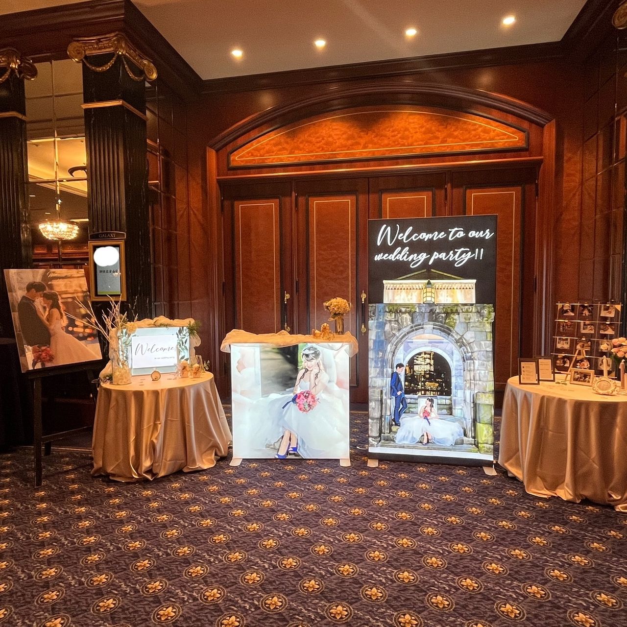 会場前のウェルカムスペースも広く使えるので、私達は2m×1m、1m×1mの大型ウェルカムボードを持ち込みました。