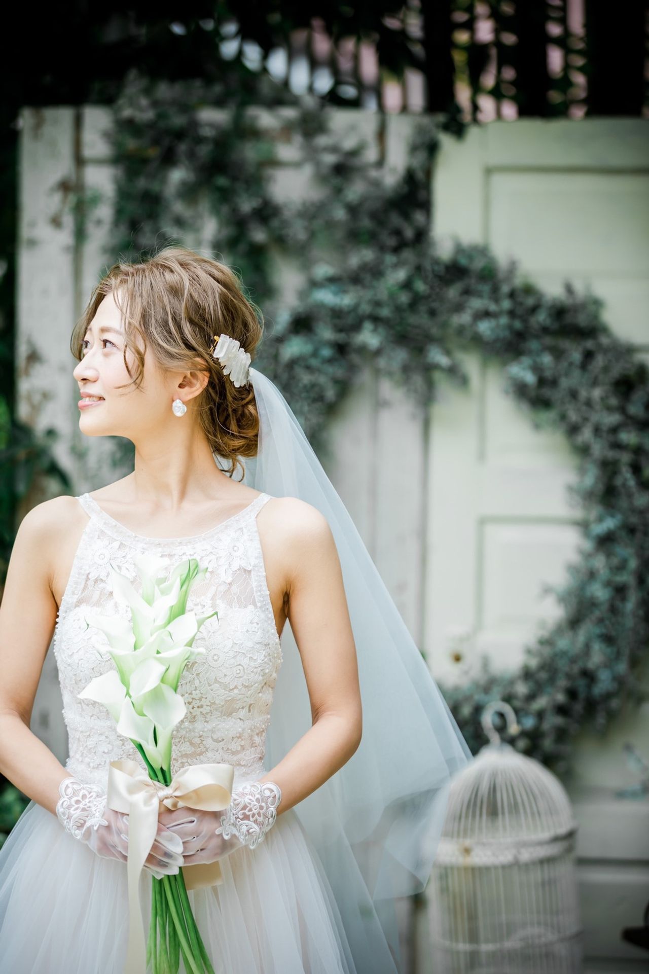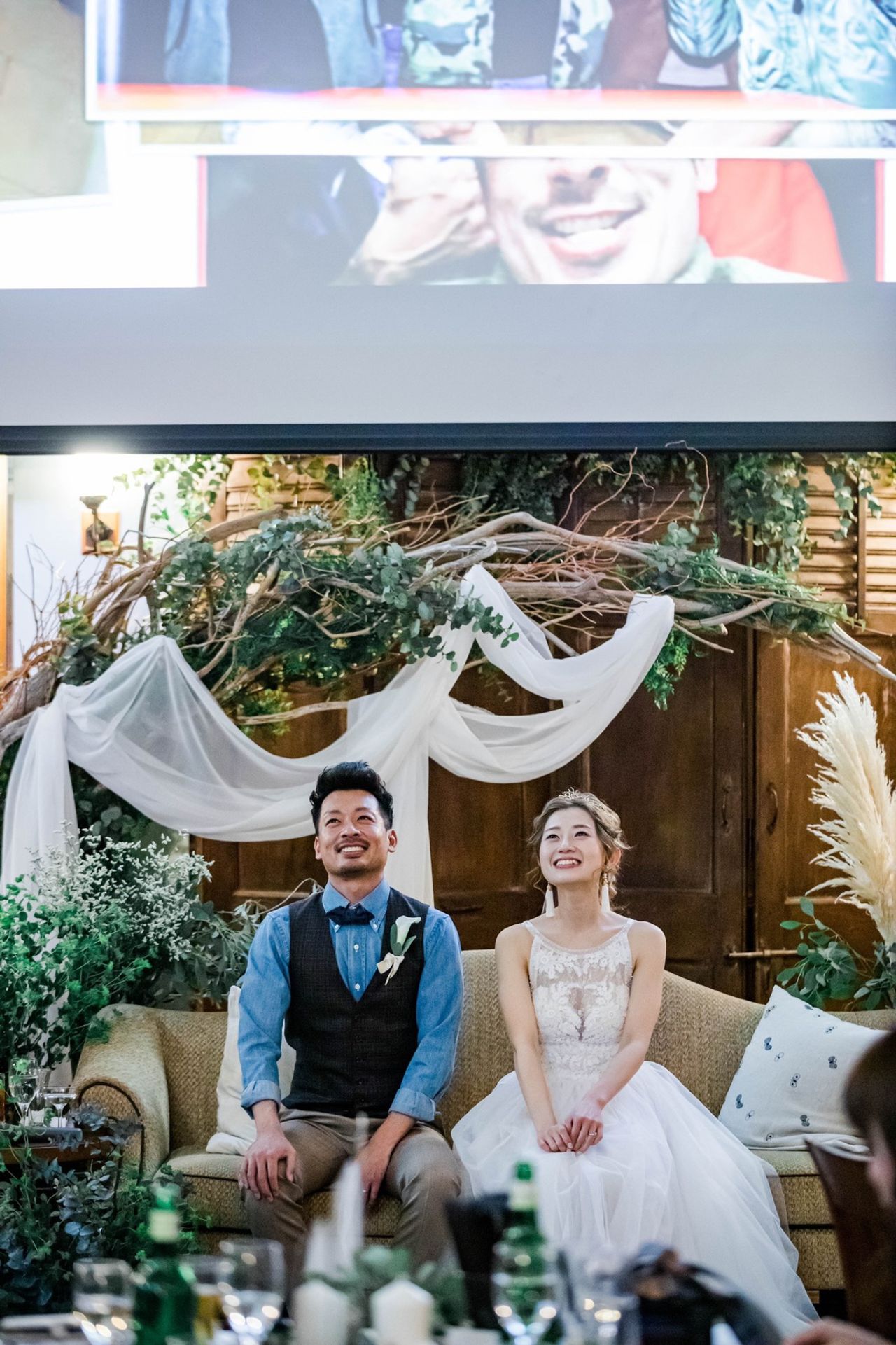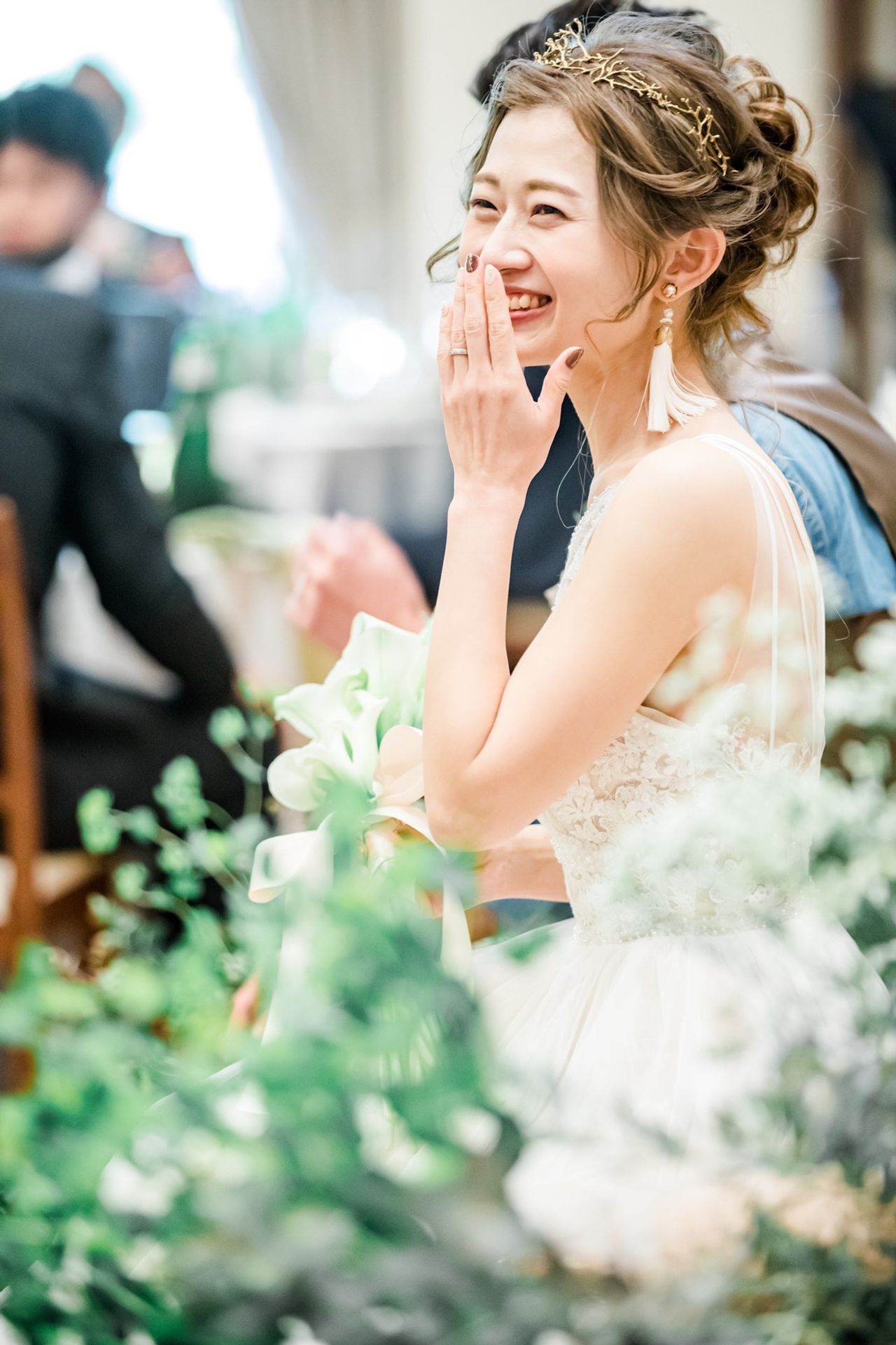 グリーンやウッディを基調とする会場にも、春という季節にもピッタリなドレスで、ゲストの方からもたくさんのお褒めの言葉をいただきました。