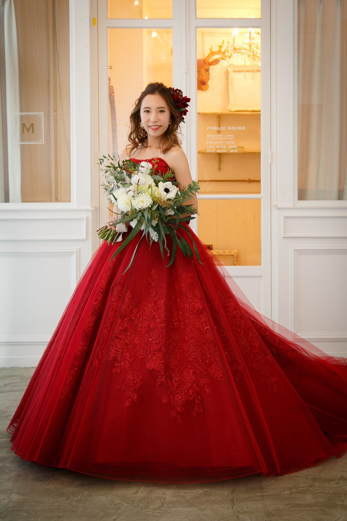 結婚式が決まる前からずっとカラードレスを着るなら赤いドレス!と決めていましたが、心からこれだ!と思うドレスに出会えずにいました。そんな時にインスタで見つけたレッドロニセラ。