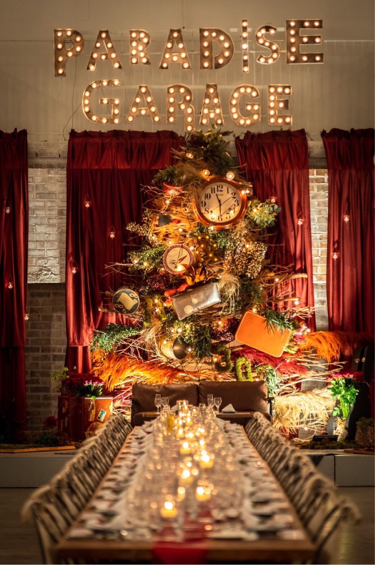 他にこだわったのは、アンティークな素材を使ったことです。ソファー、キャンドル、額縁、時計、など。時計はツリーの上で11/30を刻んでいます♪