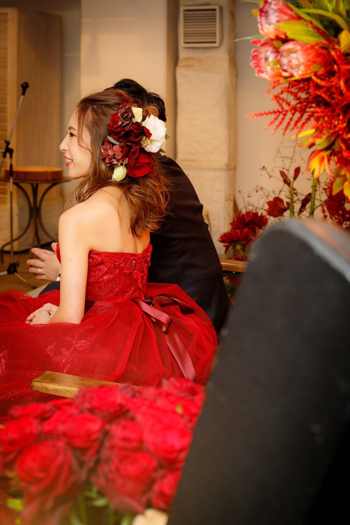 バイラは式のギリギリで購入しましたが、赤いドレスにとても似合ったので良かったです!
