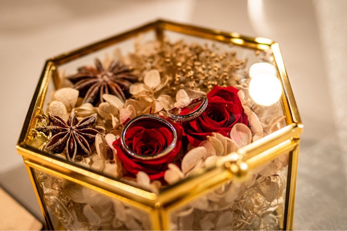 正式にプロポーズをされていなかったことをずっと根に持っていましたが(笑) 旦那さん側の余興で、私の大好きなback numberのオールドファッションをアカペラで歌ってくれた後に100本のバラでプロポーズしてくれました。