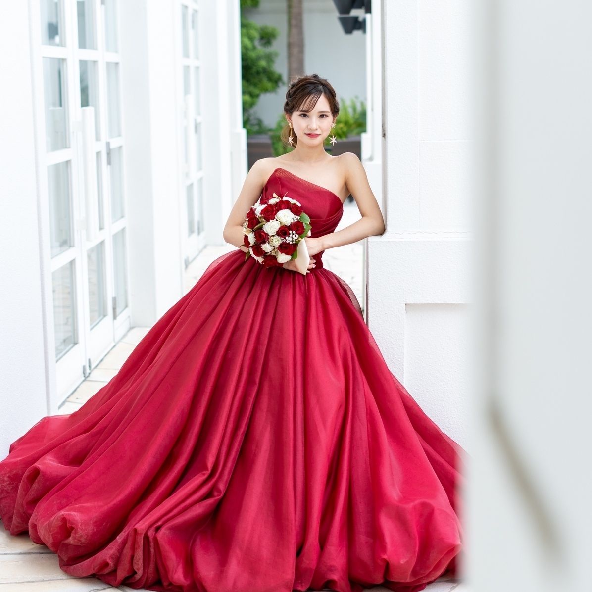 憧れていたパフスリーブにチュール素材、胸元が斜めになっているデザインや赤色であること、全てがタイプです!