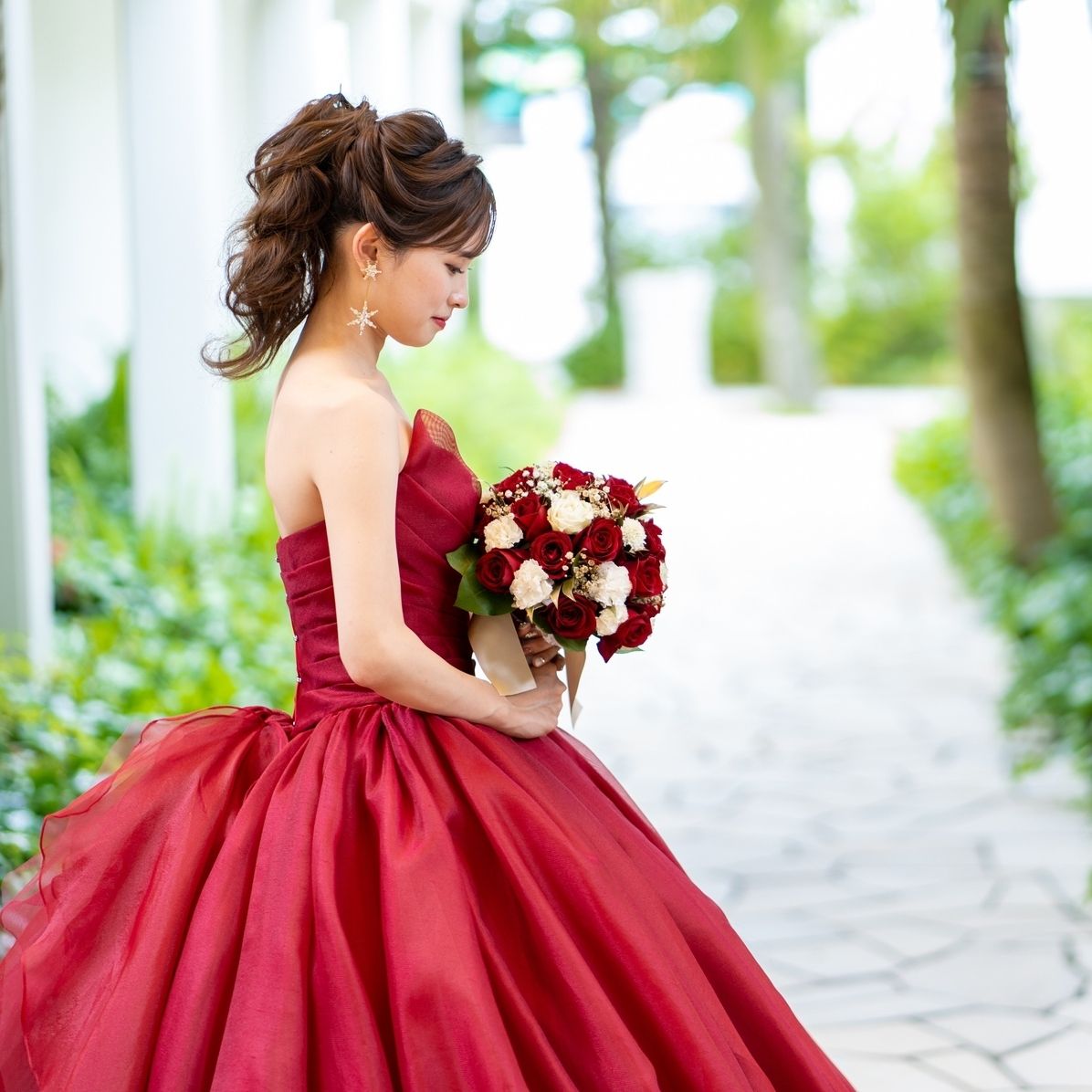 カラードレスではパフスリーブのドレスを選んだにも関わらず、パフスリーブありでの写真を撮らなかったことをとても後悔しています。