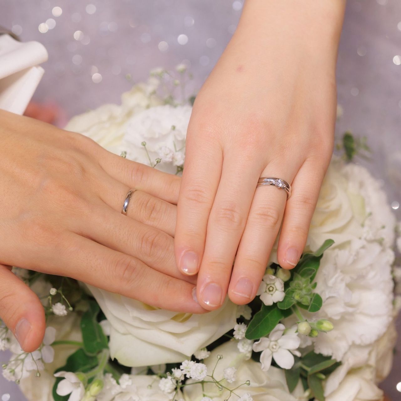 婚約指輪と重ねてつけられるものを意識して選びました。毎日身につけるものなので、シンプルなデザインでつけ心地を最優先にしました。