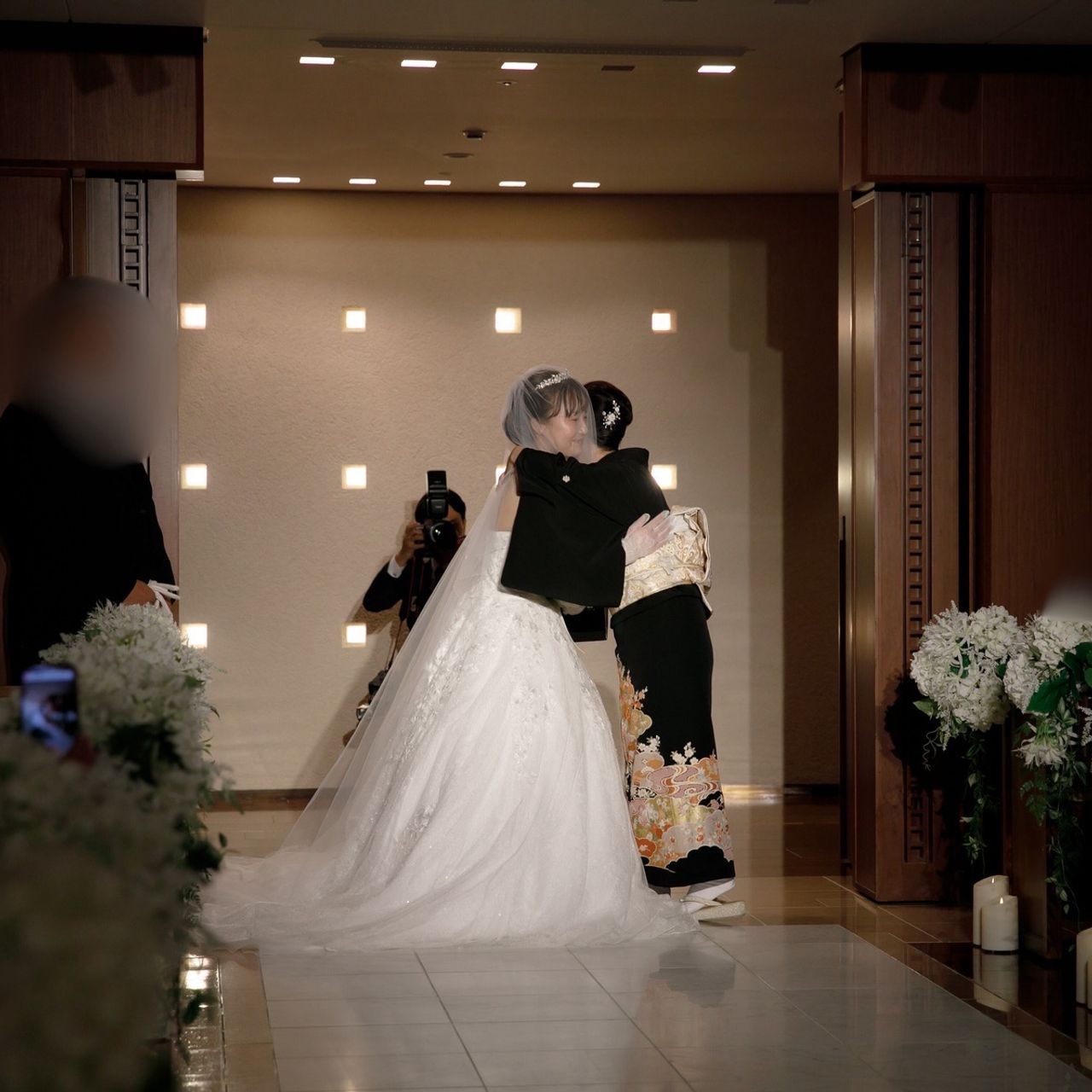 リハーサルでは二人でアワアワしていたのに、本番では母が笑顔でベールダウンをしてくれて、その後優しく抱きしめて送り出してくれたとき、思わず涙が溢れました。