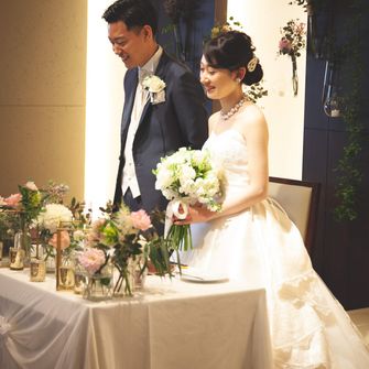 普段からお世話になっているゲストの方に感謝を伝えることをコンセプトに、装花やお料理に春らしい雰囲気を前面に押し出しました。