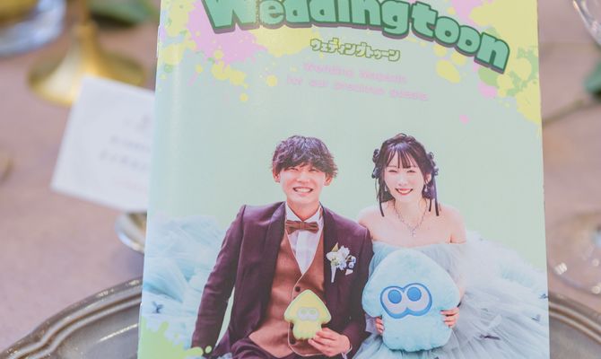 ୨୧…テーマ「スプラトゥーン」私たち夫婦の出会いのきっかけになった大好きなゲームをテーマにしました!このテーマを元に、結婚証明書やテーブルスタンド、テーブルナンバー、プロフィールブックやウェルカムリースなど、diyをがんばりました♡୨୧…コンセプト「ゲストに笑顔を届ける」ゲストの貴重な時間・お金をいただく立場でもあるので、とにかくゲストに楽しんでほしい、笑顔で帰ってもらいたい!を念頭においていました💭