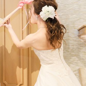 コンセプト:『感動と笑顔を届けたい』来てくださるゲストの皆さんにも楽しんで頂きたく、様々な演出を考えました。新郎から新婦への薔薇の花束、新婦から新郎へのファーストバイト時のビッグしゃもじ等、個々で打ち合わせをし、当日のサプライズは大成功しました!