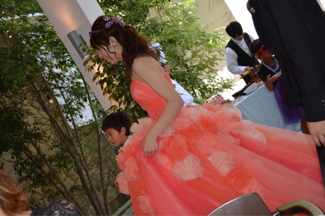 カラードレスは、お花屋さんで頼んだブリザーブドフラワーのヘッドパーツを使用しました。