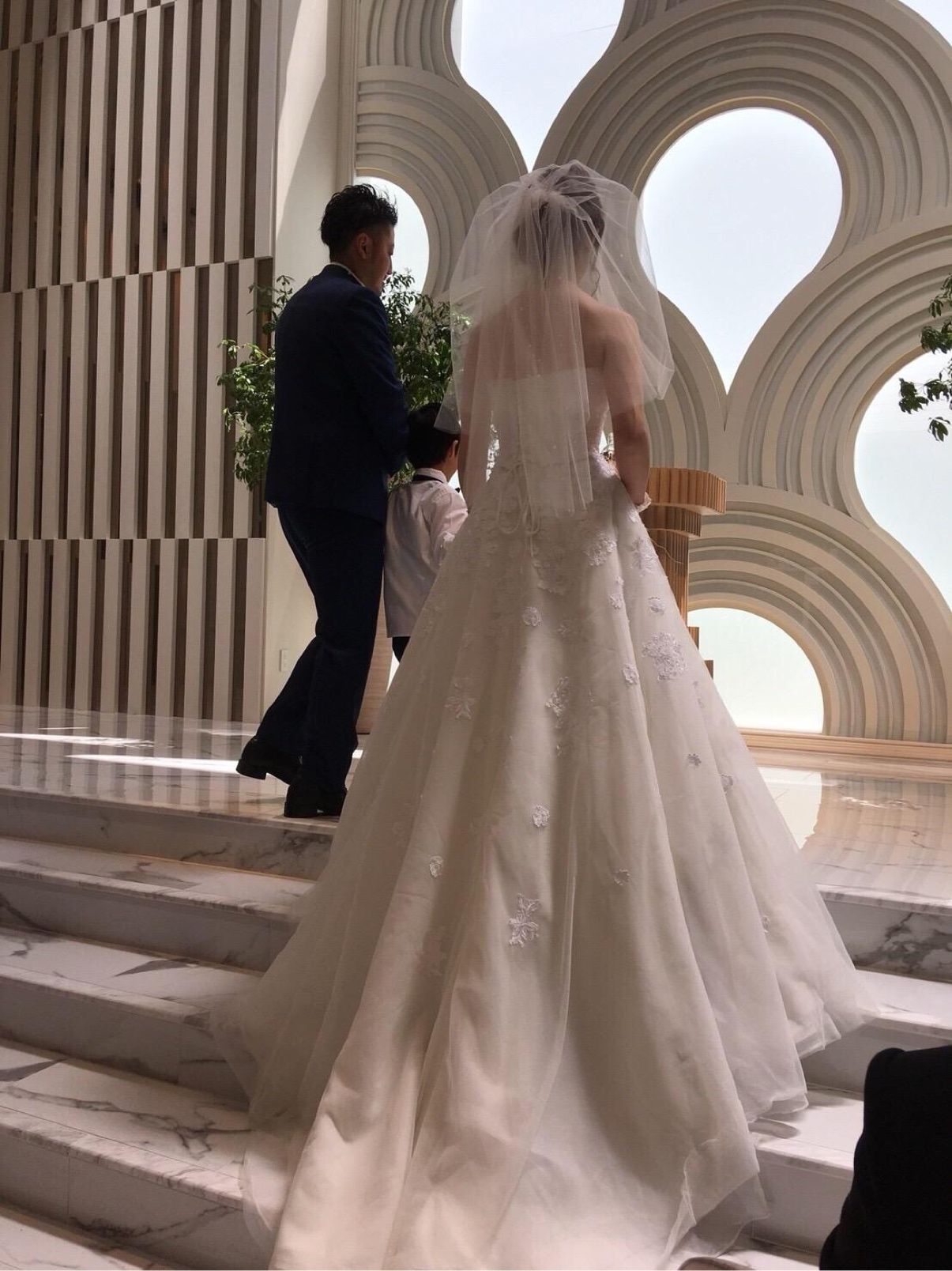 挙式会場は天井が高く、全体的に白くて明るい雰囲気があり綺麗です。 外からの光が差し込み、ウエディングドレスがとても映えて見えます。白い挙式会場に憧れていたので会場見学で初めてチャペルを見たときは感動しました!