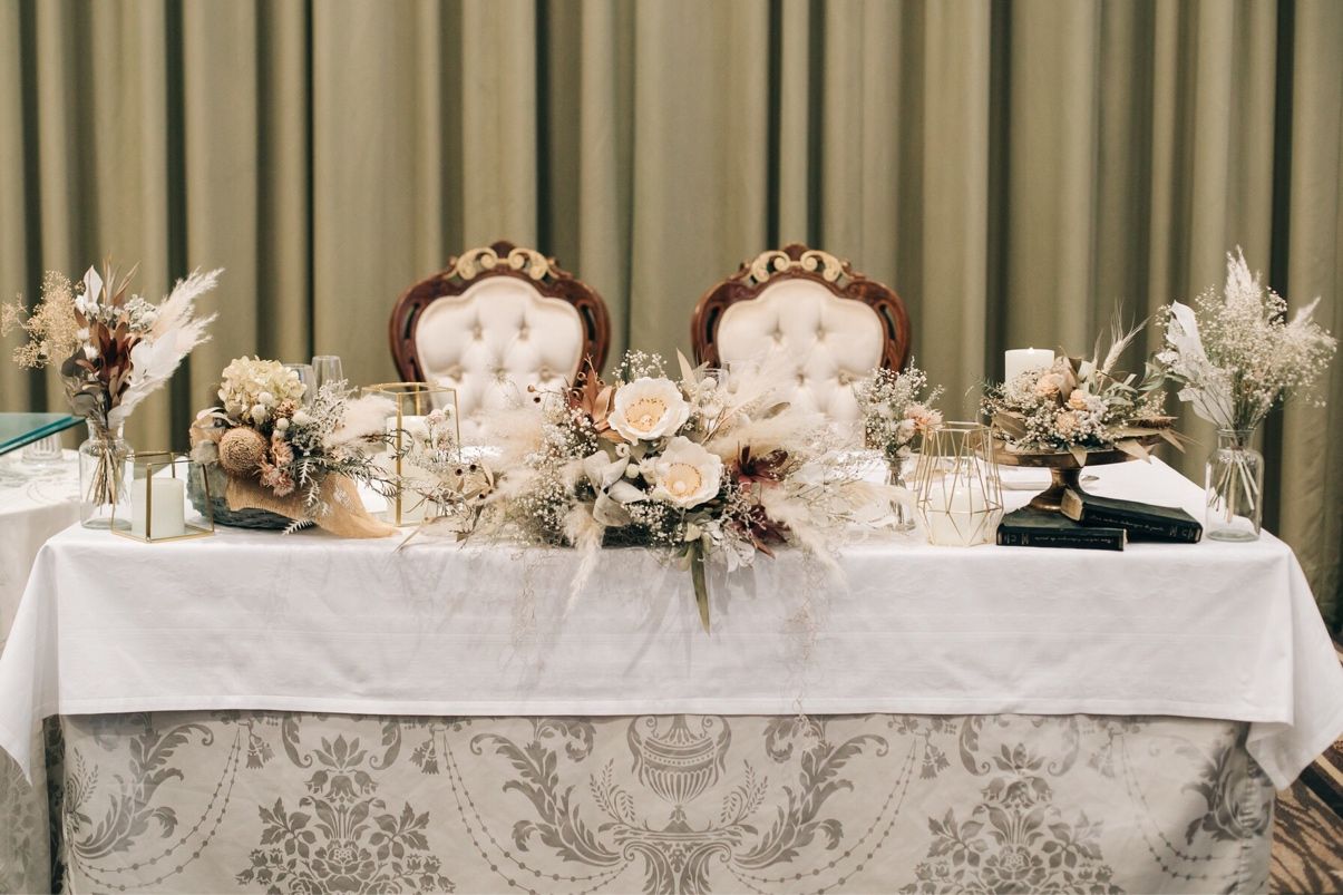 DIYをたくさん作ってナチュラル、ガーデンに合う 木、お花を使ったDIYやゴールドをベースに物を集めました。ピクニックということでウェルカムトランクをDIYに取り込んでおしゃピク感を演出しました。
