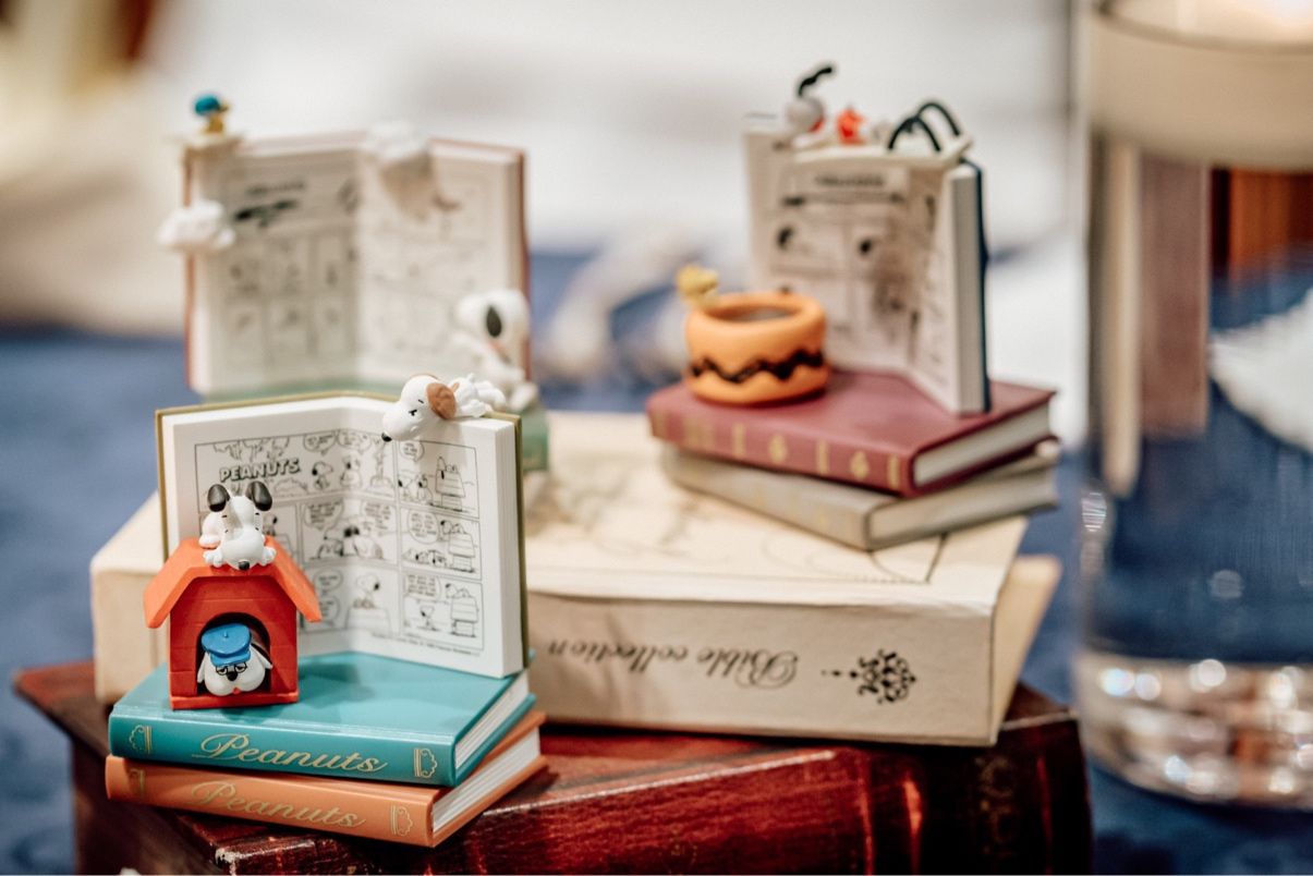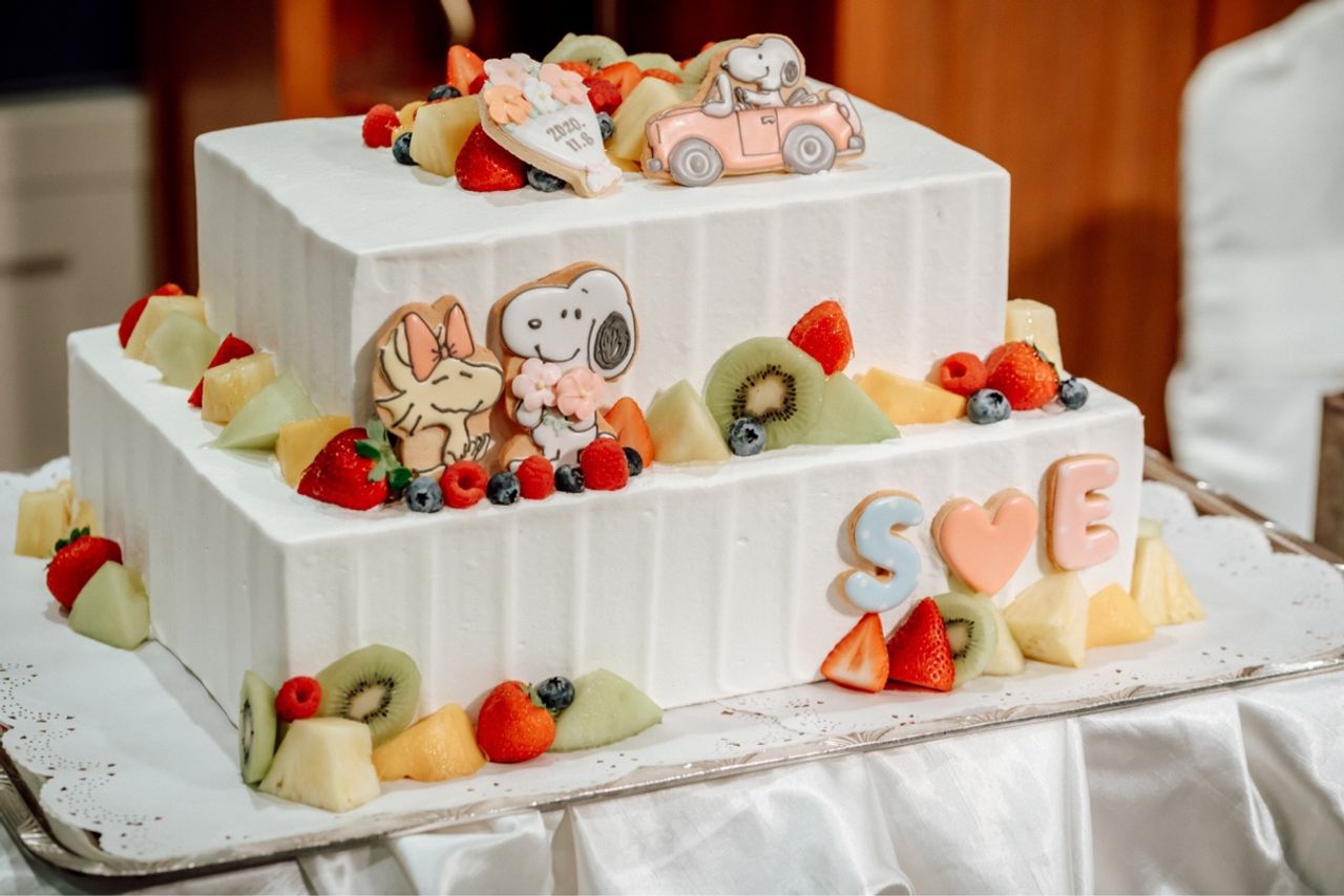 大好きなスヌーピーをアイシングクッキーで飾れるよう、それに合うデザインのケーキを、ホテルのものから選びました。