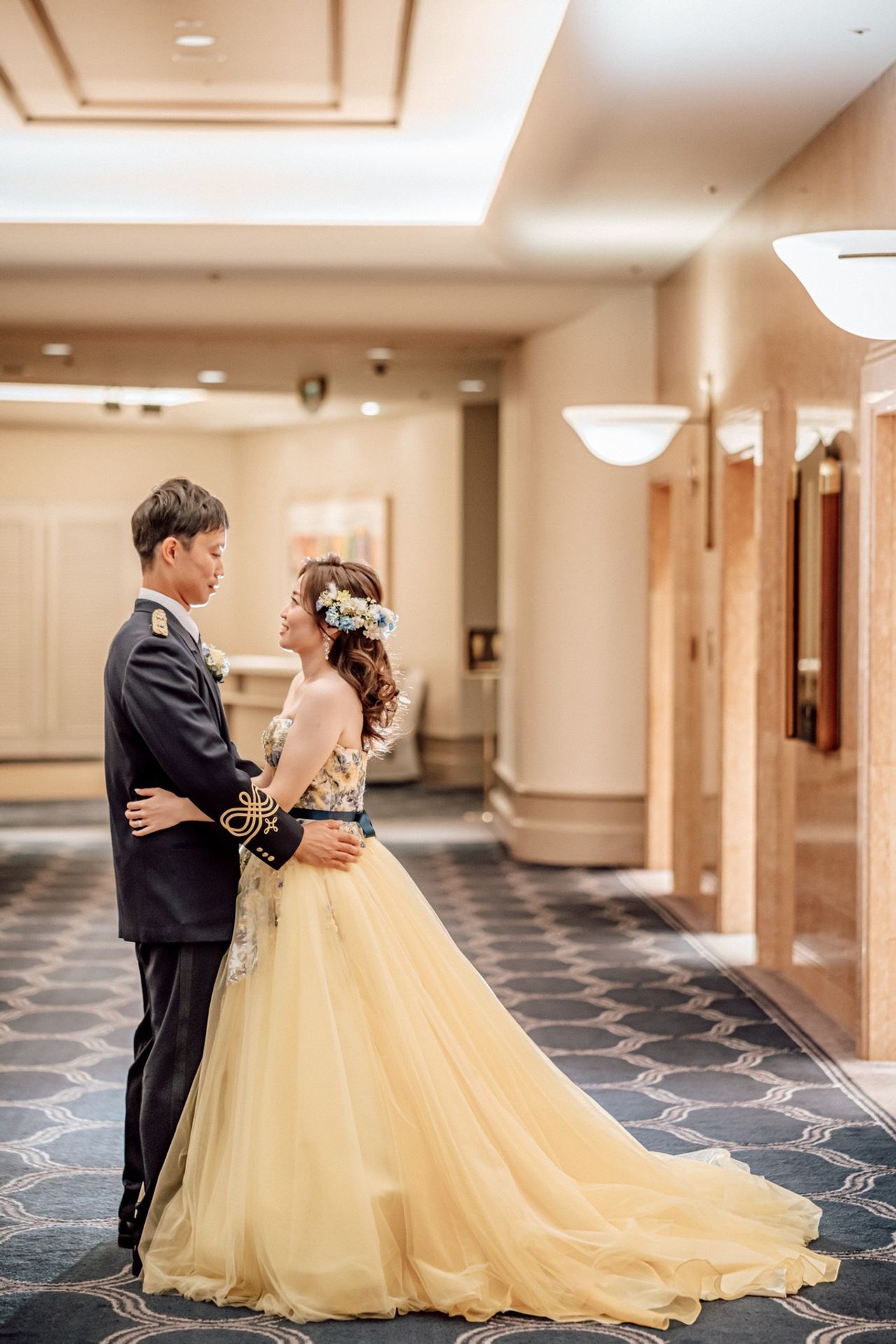 ・お色直しのときは、イエローミルトニアに合わせて、ゴールドのジルコニアイヤリング。