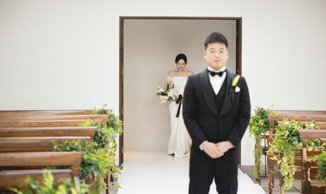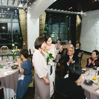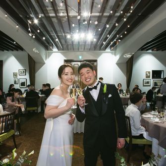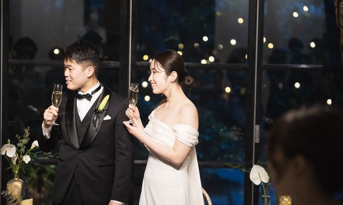 ガーデンでの演出がしたかったので、お庭が素敵な式場で絞って探していました!ちょうど空いていたお日にちが夕方だったので、ナイトウェディングの大人な雰囲気にも合わせて、カラーも多色を使わずシンプルなものにしました。