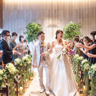 普段から笑いの絶えない夫婦なので、元気なビタミンカラーとノリノリの音楽で、ゲストのみなさんと笑顔溢れる式にしたいと思ったからです。