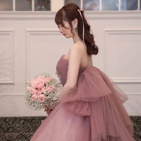 お色直しの可愛いカラードレスには、絶対やりたかったハーフツイン×リボンスタイルにしています♡