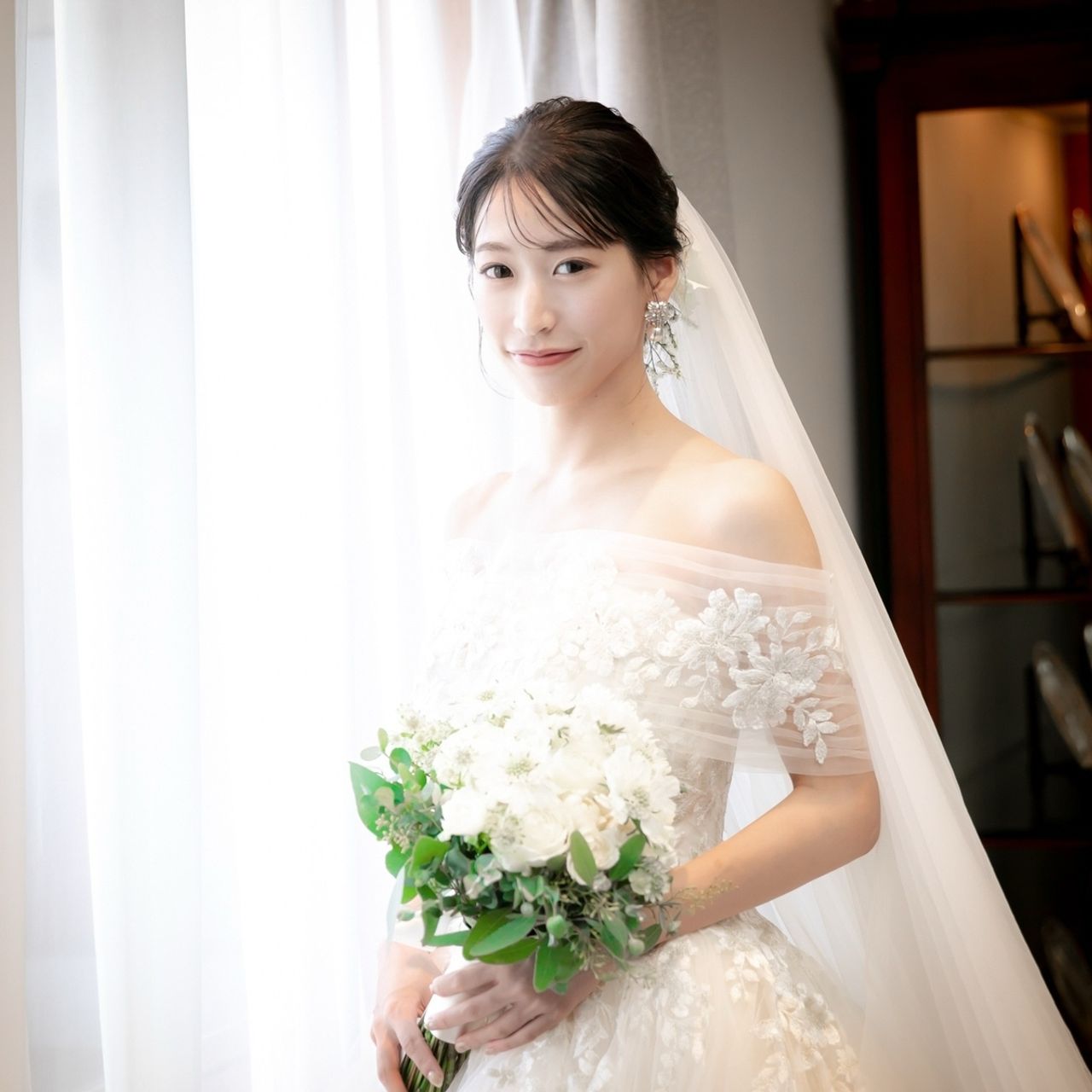 お色直しではボリュームのあるベール風チュールを付けました。