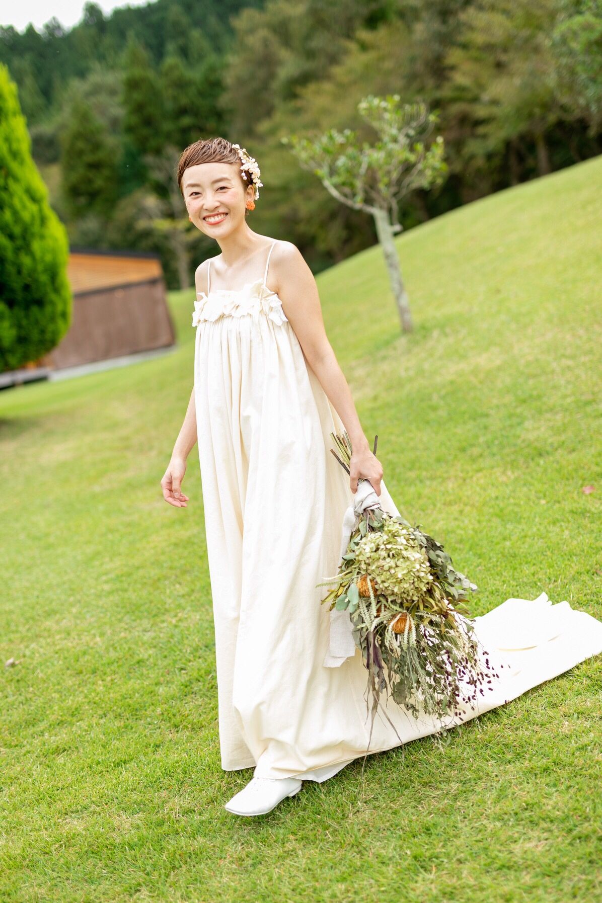 アウトドアウェディングだったので、天候が自分たちではどうにもすることができませんでした。当日は天気はよかったのですが、少し雲が多く、写真にとるとやや雲ってしまったのが残念でした。