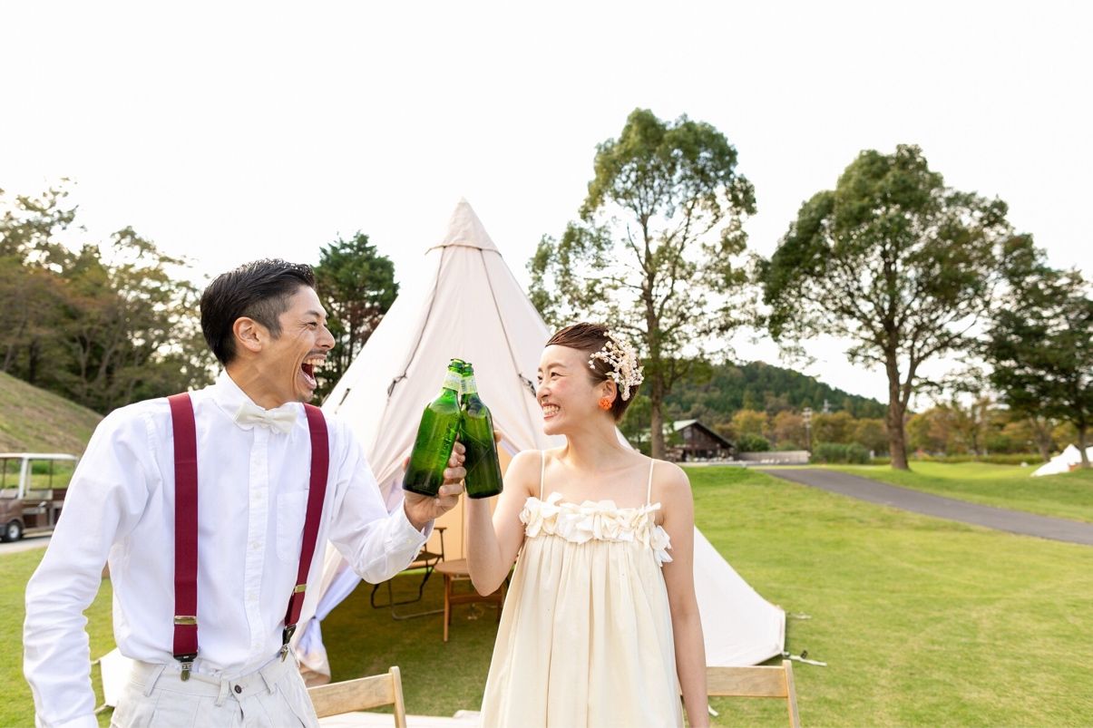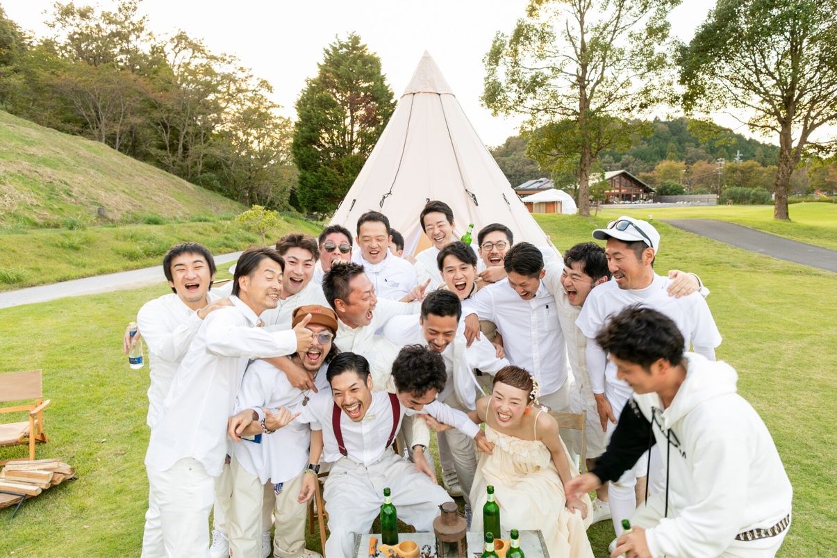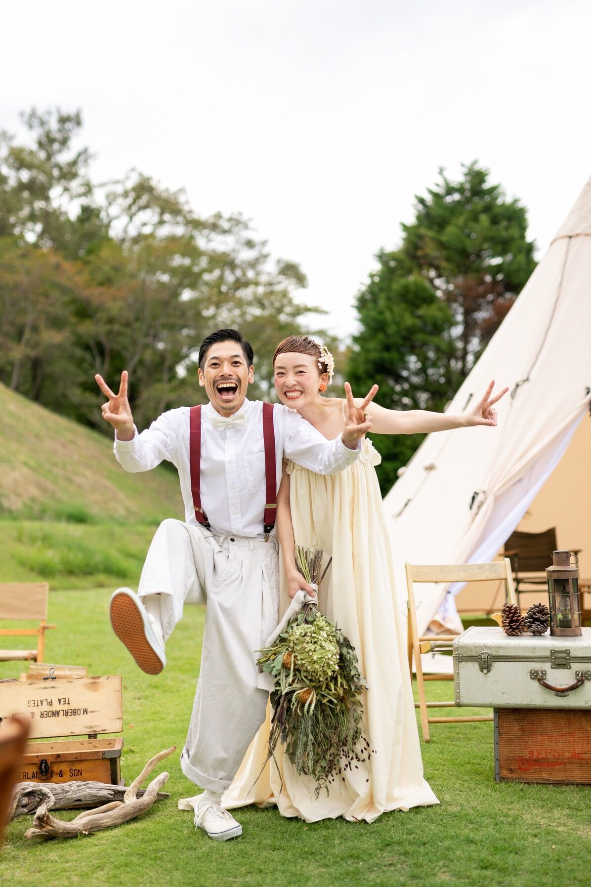 パーティ後、キャンプをしてみたくなったという声やこんな結婚式初めてで楽しかったという声をもらいました。子供から大人まで皆が笑顔になるパーティーにすることができました。