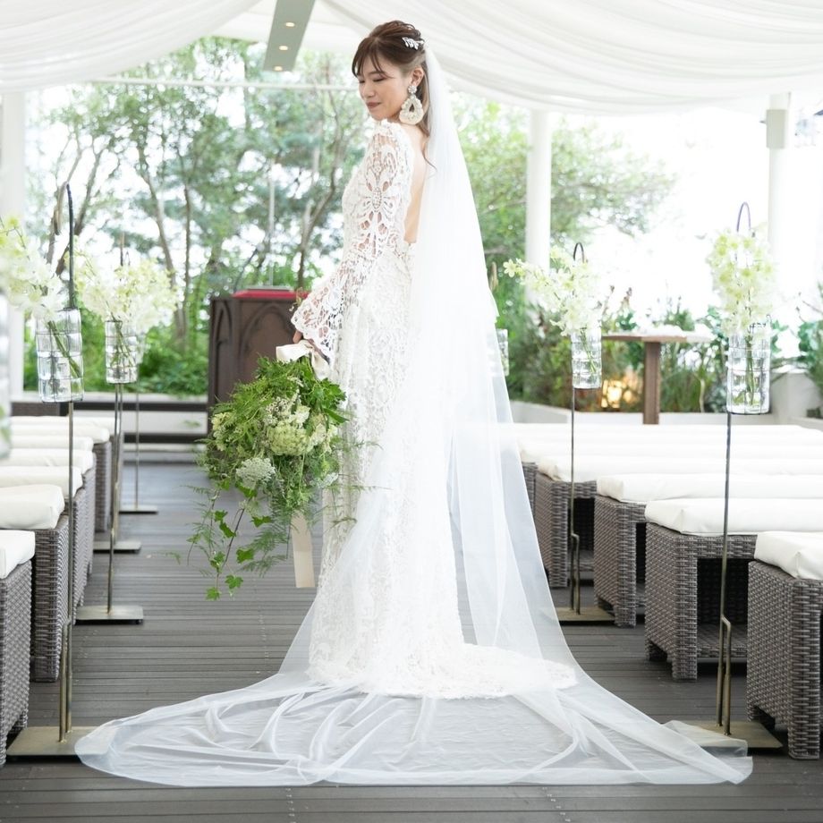 ヘルシーな印象のドレスですが、ザクザク大きめなレースの存在感と袖の形に一目惚れでした!指輪交換の際に撮っていただいた写真も、袖の感じが可愛く写っていてお気に入りです。