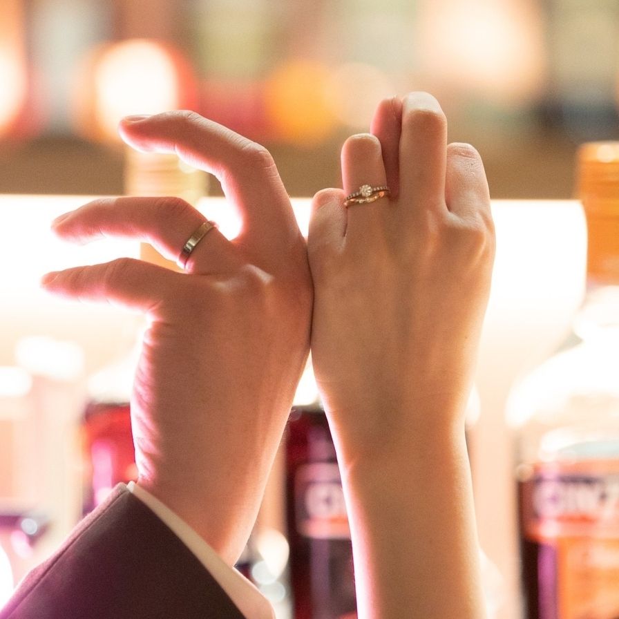 ペアリングではないのですが、同じブランドでそれぞれ気に入ったものを選び、結婚式の日付とイニシャルを刻印してもらっています。