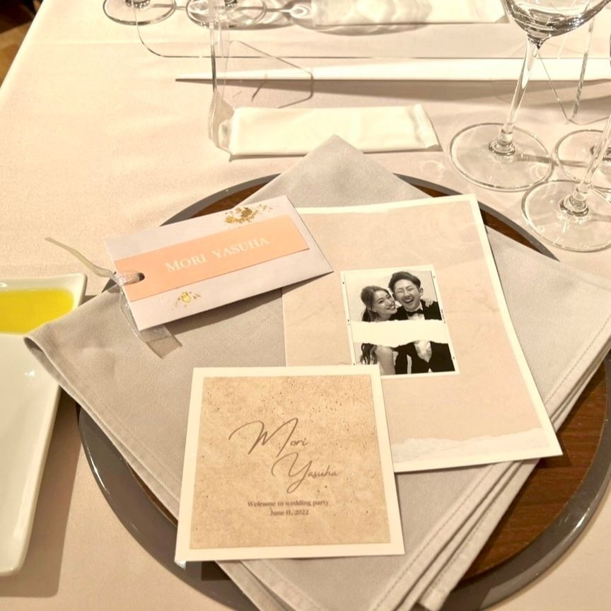 自分好みの理想の空間になるように、できるものは全て手作りにしたのがこだわりです!特に、席札は一人ひとりのゲストのイメージに合わせて背景を選び、そこに名前を入れて全員違った柄で作成しました。こだわって作った席札を友人ゲスト同士で写真に撮り、InstagramなどのSNSに載せてくれていたのが嬉しかったです!