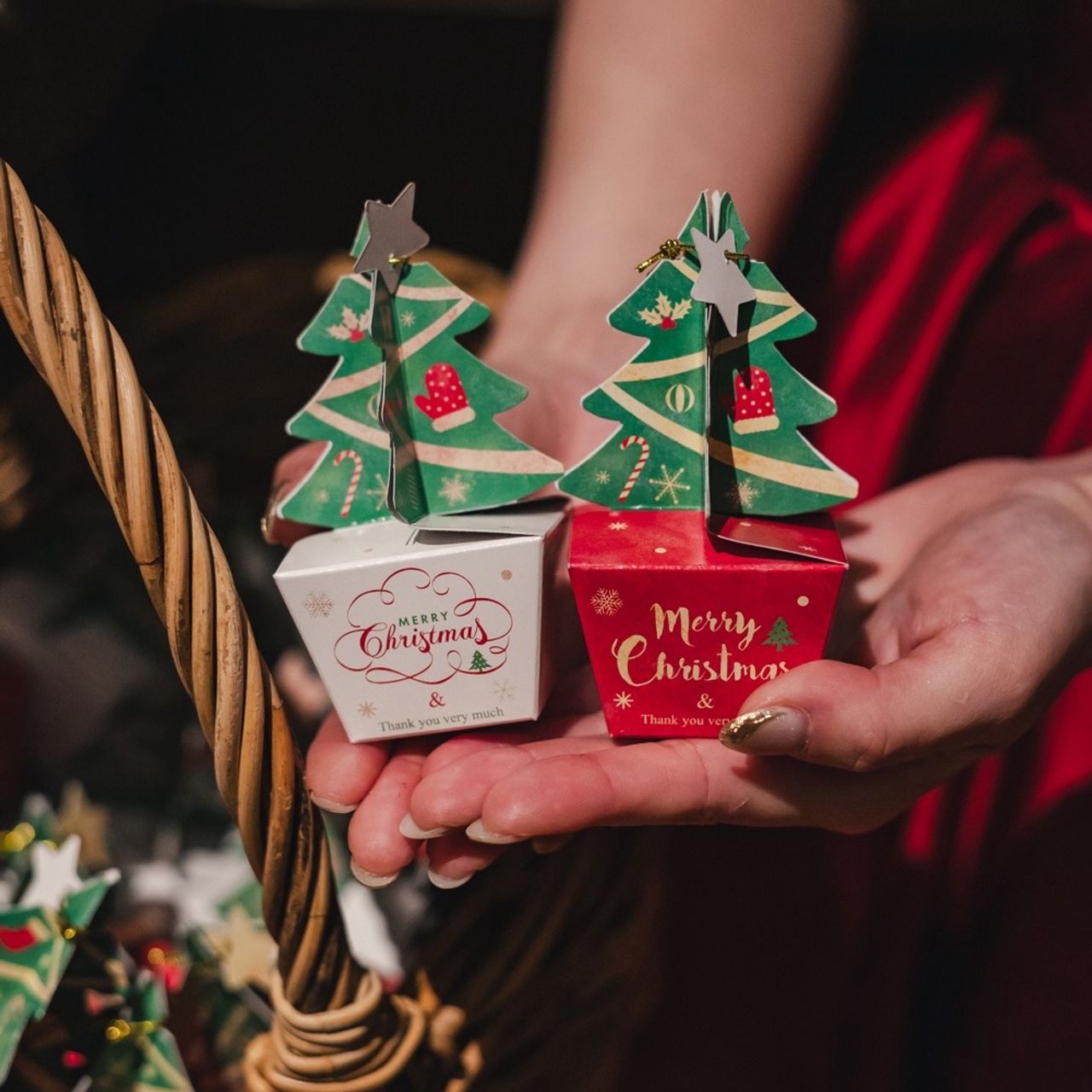 加えて、クリスマス感を出すために、プレゼントボックスを手作りで用意し、隙間にいい感じに置いて頂きました。