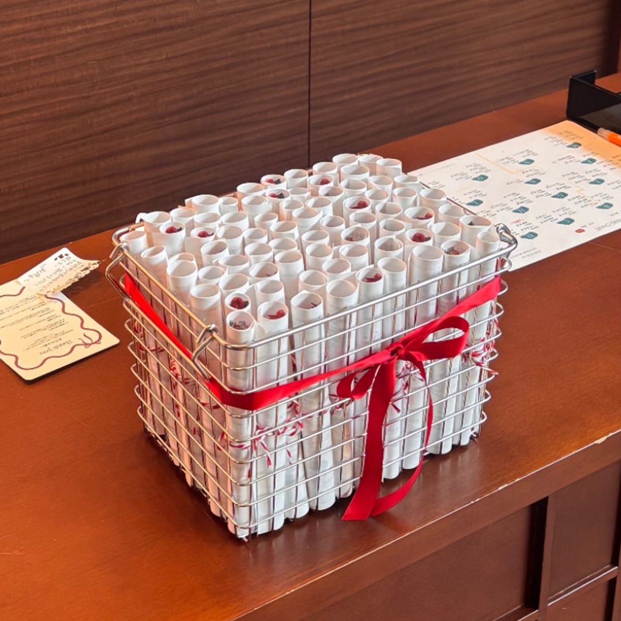 景品に某駄菓子300本や、好きな紅茶やコーヒーをプチギフトとして持ち込みたかったのですが、そこは諦めました。