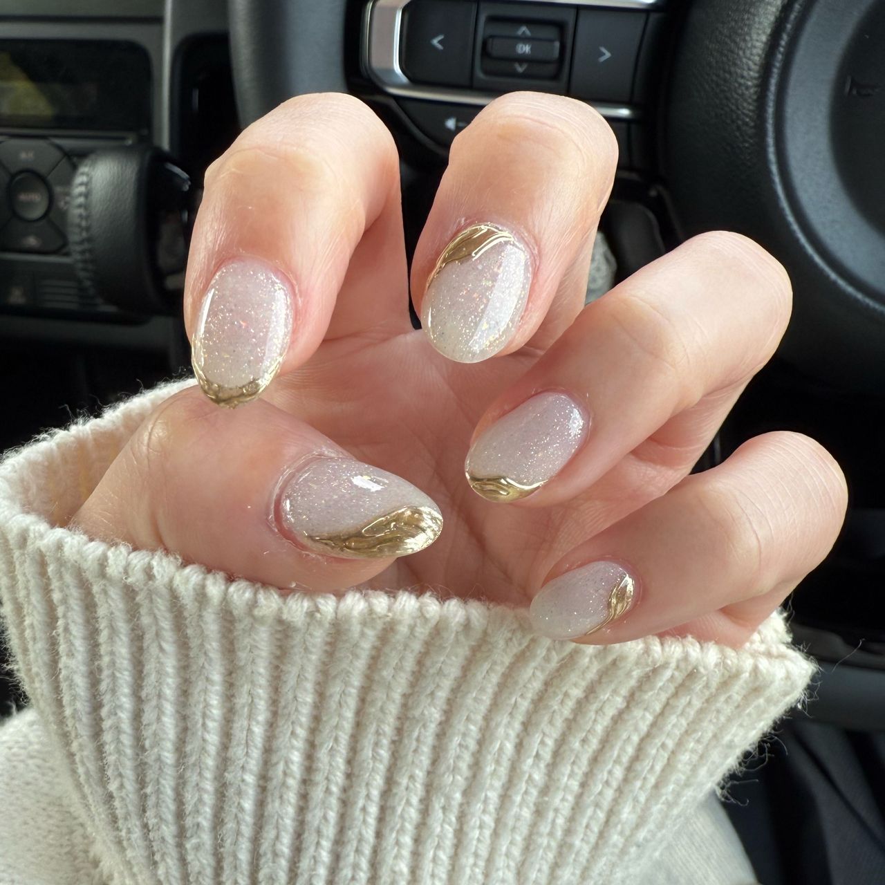 パールとキラキラを混ぜて、冬っぽい感じで。
