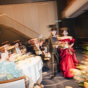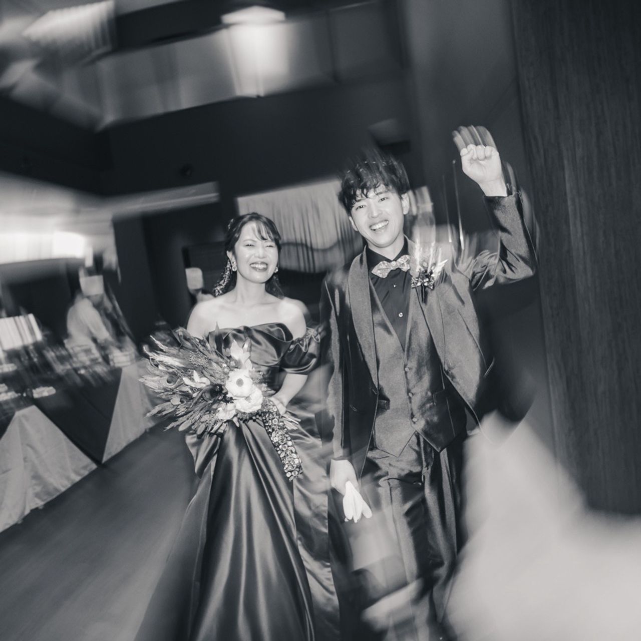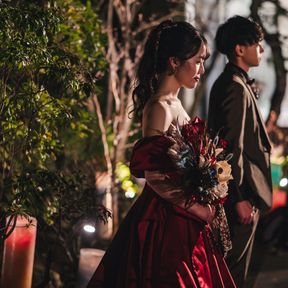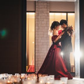 サテン生地の艶感が、大人のナイトウェディングを際立たせてくれました。
