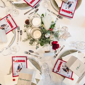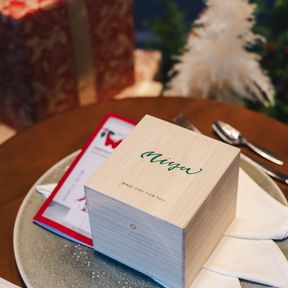 各テーブルも色味統一を意識し、テーブルナンバーも、プロフィールブックもルスールカップの箱も色味を合わせました。