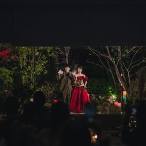 後方ステージや大階段を降りての披露宴入場や、オープンキッチンからのファイアーパフォーマンスもとっても魅力的でした。