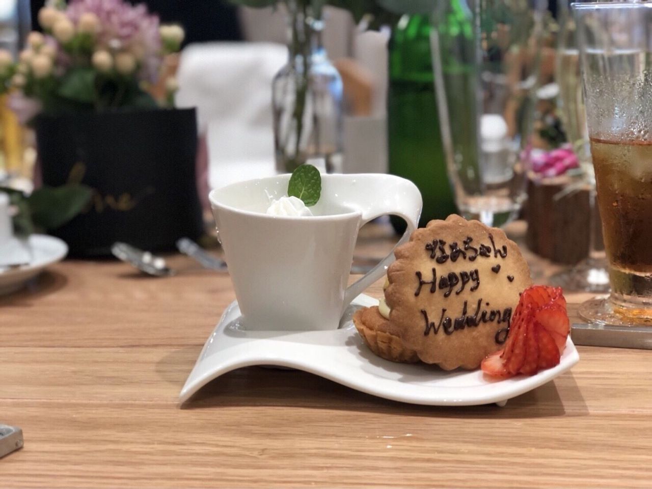 デザートには小さいタルトを追加、結婚した友人にや誕生日が近い子にはプレートをそれぞれ用意しました。