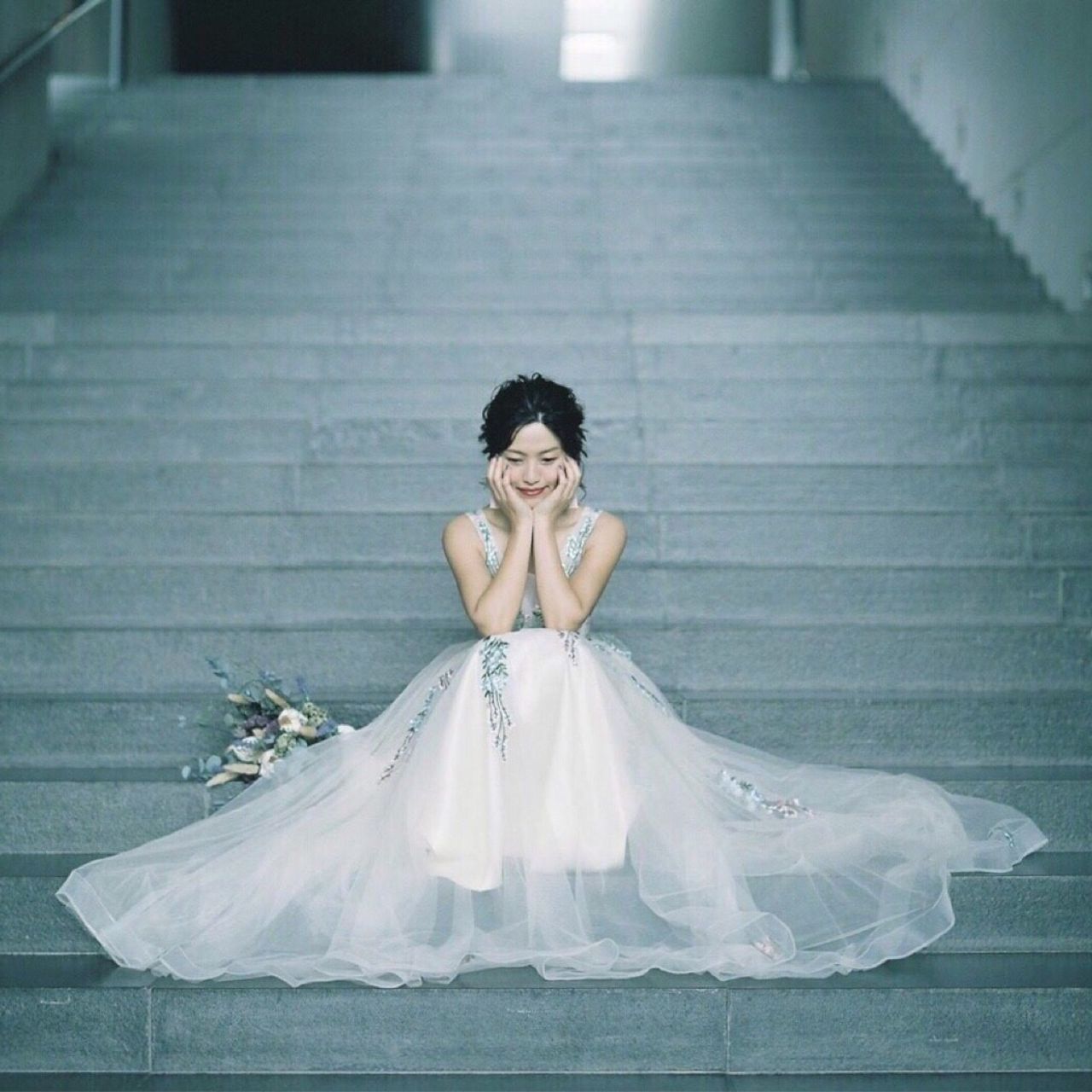 ヘッドドレス、イヤリングは作家さんのブローチをイヤリングへ変え、リースブーケ(全て手作り)にしました。