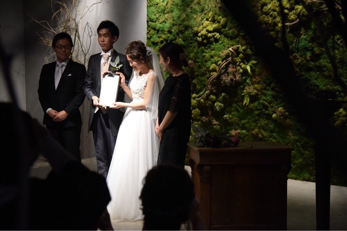 挙式は、森の中をイメージされたチャペルで幻想的な雰囲気で出来ました。