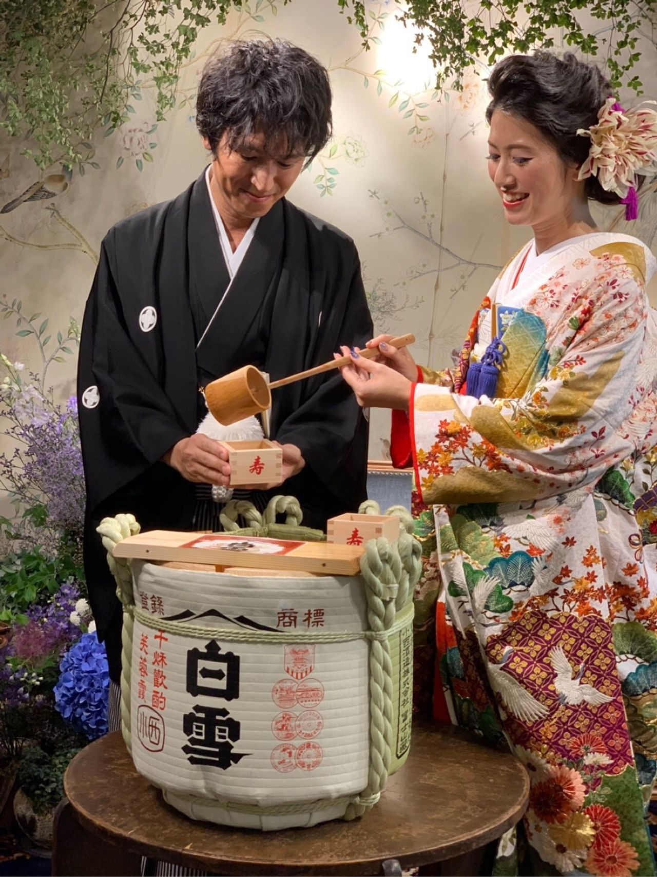 式場に関わりのある白雪というお酒で鏡開きをしてお酒を振る舞いました。