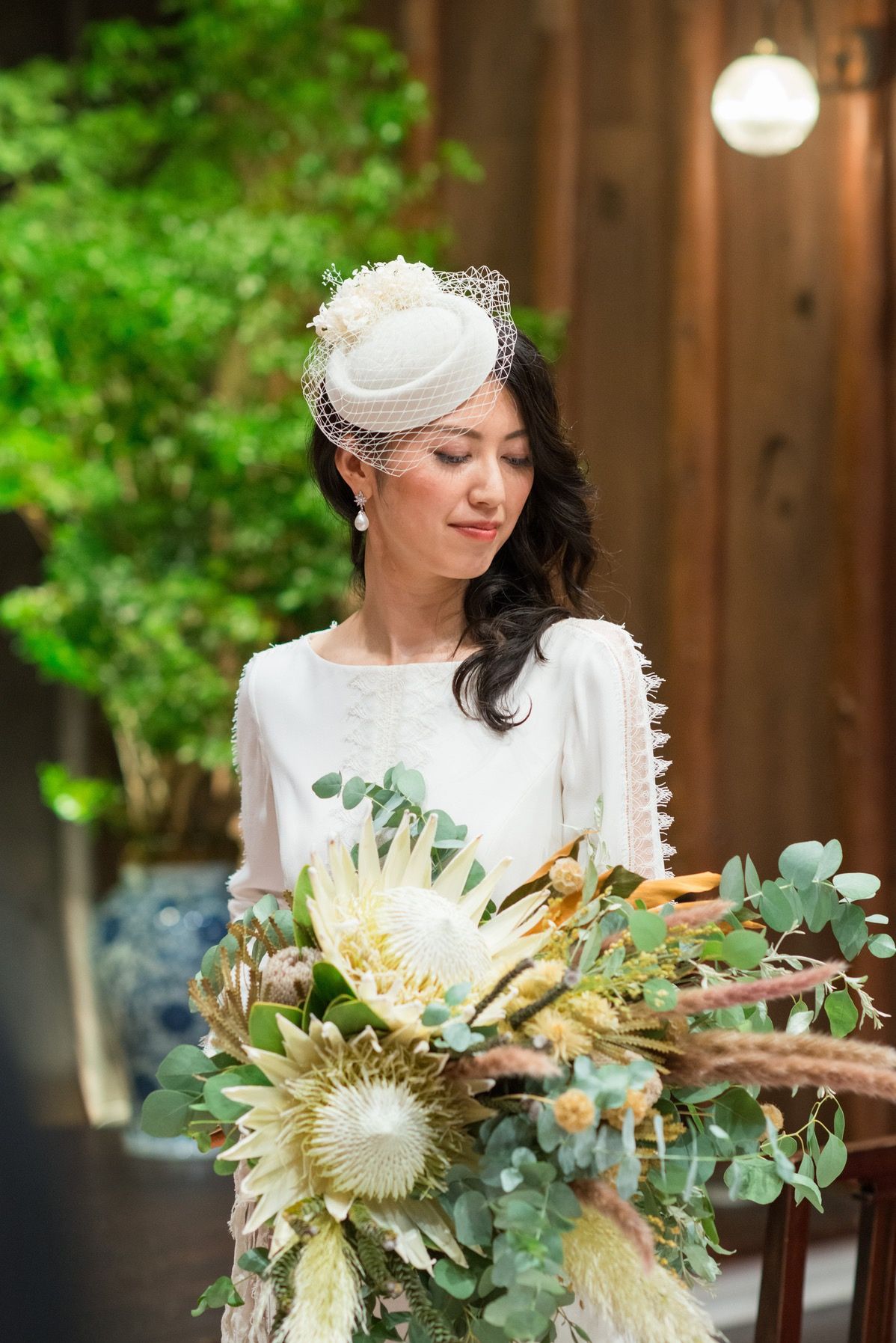 和装ではダリア、ドレスではトーク帽