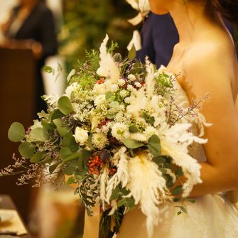 式の雰囲気は大人ナチュラル。 一番こだわったのは、参列者のみんなとの"繋がり"。一緒に作り上げたい気持ち、感謝を伝える式にしました。