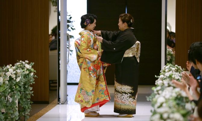 「和装を着たい」という強い希望がありました。ただ、型通りの“神前仏前婚”ではなく挙式から友人らを呼べる“人前式”ができる会場を探していました。