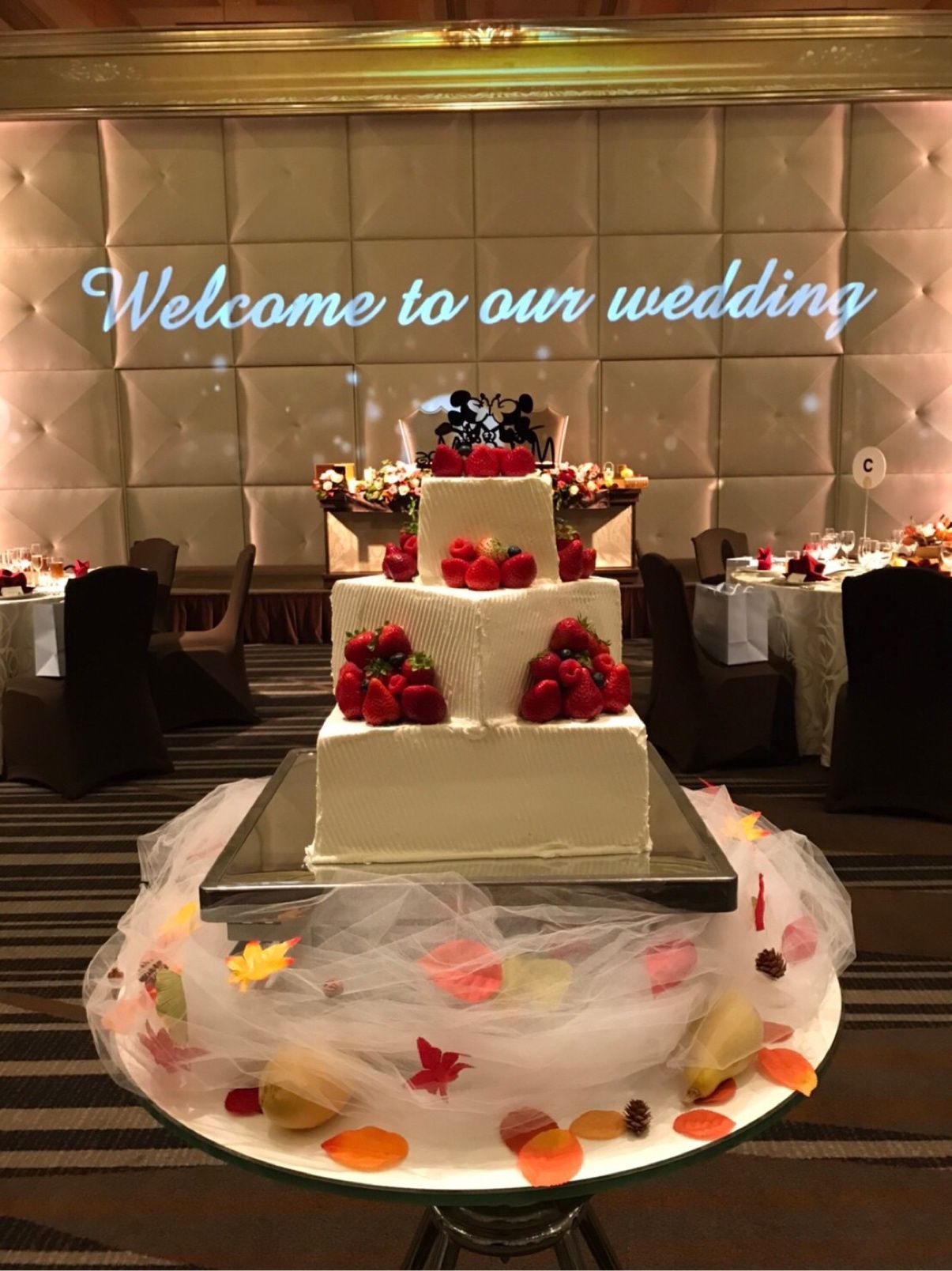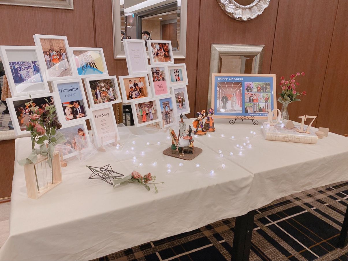 新郎新婦ともにディズニーが大好きなこと、秋=芸術を意識して、過去にディズニーランドにあったディズニーギャラリーをテーマにしました!