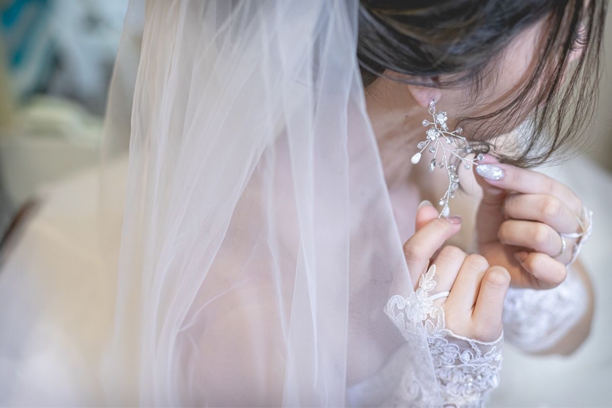 ピアスは挙式ではヘッドアクセサリーと合わせたシンプルだけどきれいな小枝ピアスにしました。披露宴ではタッセルのピアスにしました。