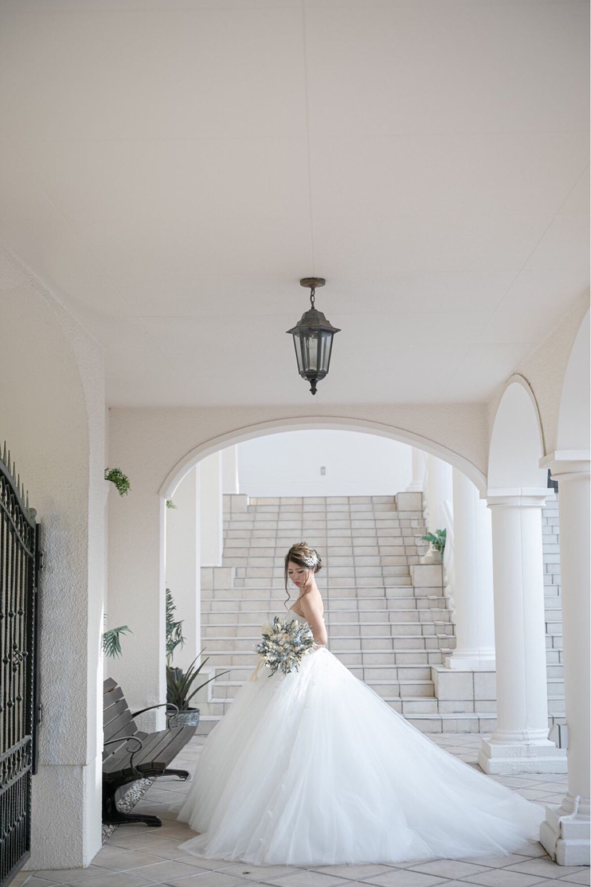挙式からそのまま大階段へ繋がる動線が1番のオススメです。大階段には絶対にしたかったブルーカーペットを使用しました。県内ではなかなか大階段×ブルーカーペットの組み合わせがなかったのでここはこだわりました!