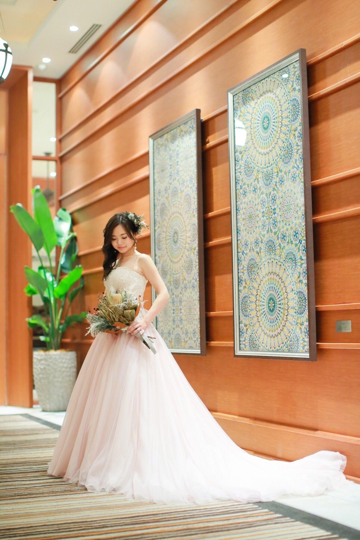 トリートのドレスの中でも、母親の「ホースヘアーのドレスが可愛い」という一言を受け、最初に着た一着が運命の1着です。1ヶ月程前であれば、ドレスチェンジも可能ということで、3回程試着しに店舗へ行き、気になるドレスを数着着ましたが、結果的に最初の1着目が運命のドレスになりました◎