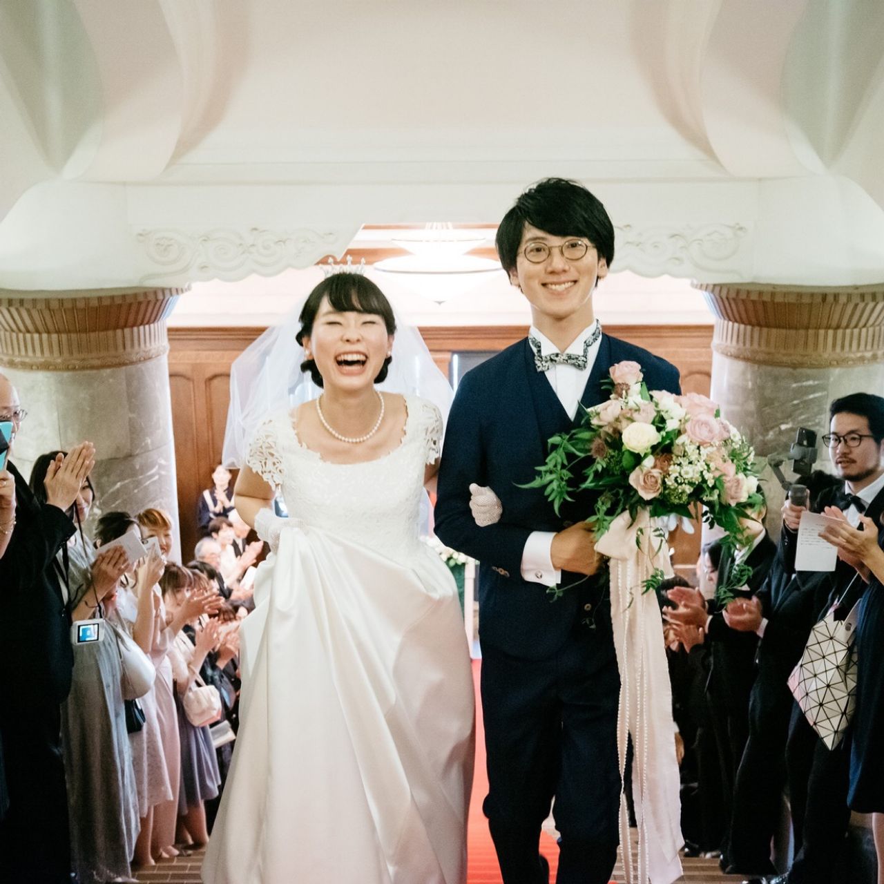 横浜の歴史的建造物である、旧・横浜商工奨励館の大階段を使って行う、とても珍しい挙式でした。