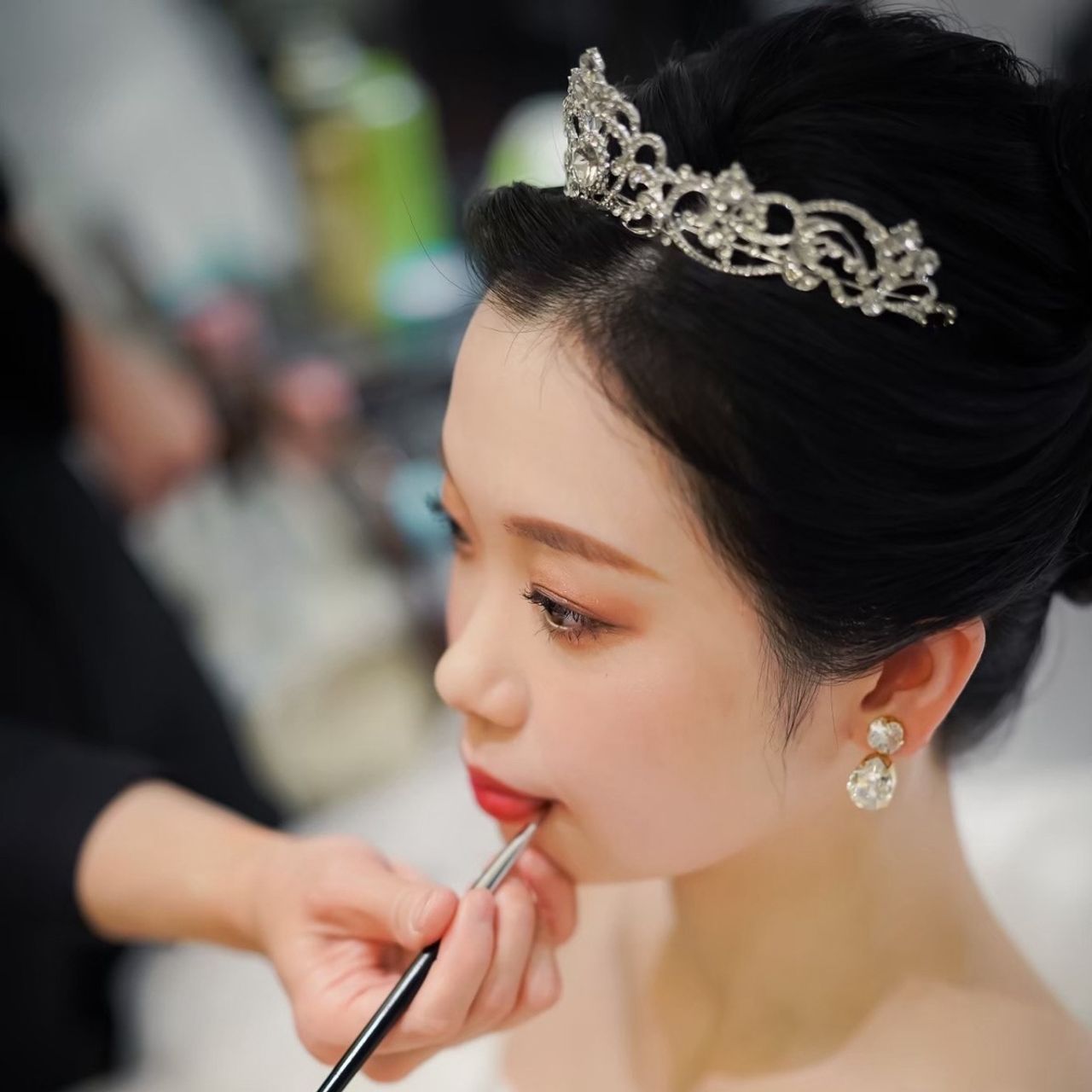 ウェディングドレスでは清楚なイメージにしたかったので、タイト目のシニヨンにしました。