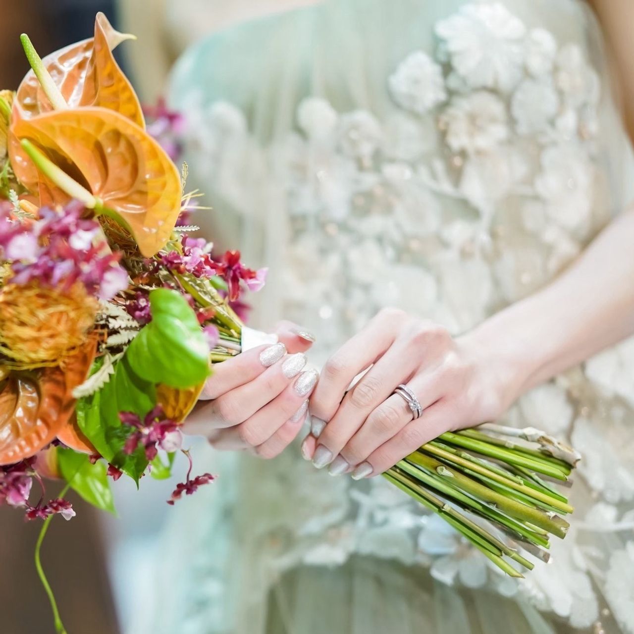 ドレスが映えるようにネイルはシンプルにしました。