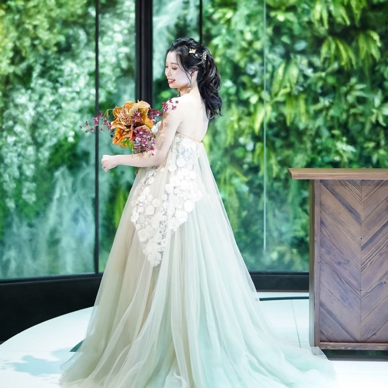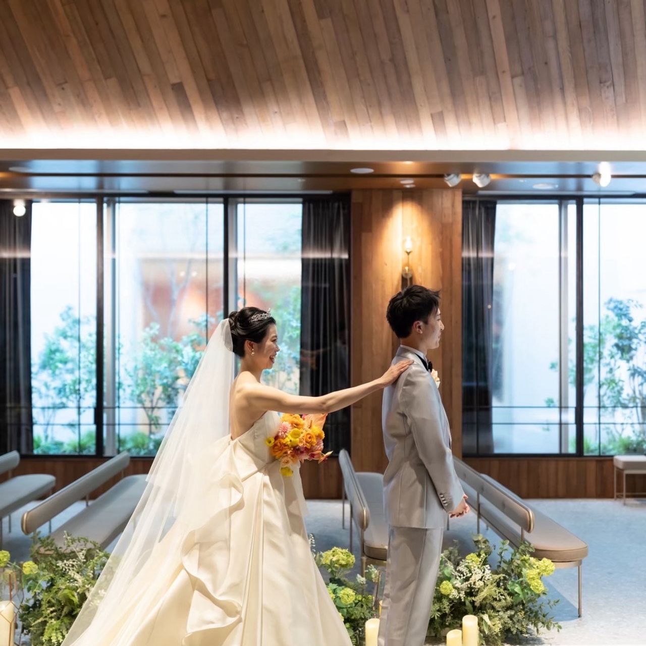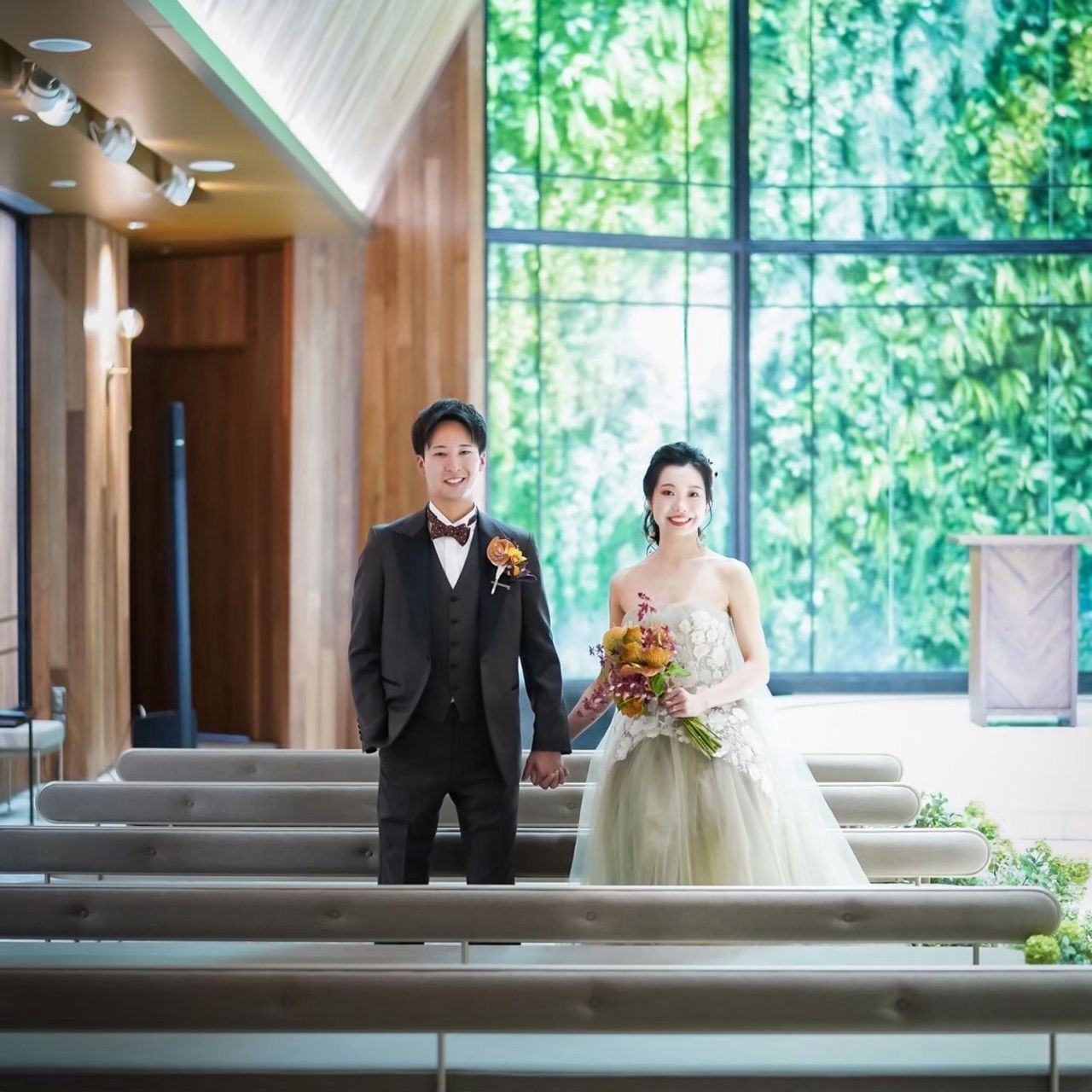 チャペルの木と緑のボタニカルでナチュラルな雰囲気に惹かれて、式場はアルモニーソルーナ 表参道に即決しました。
