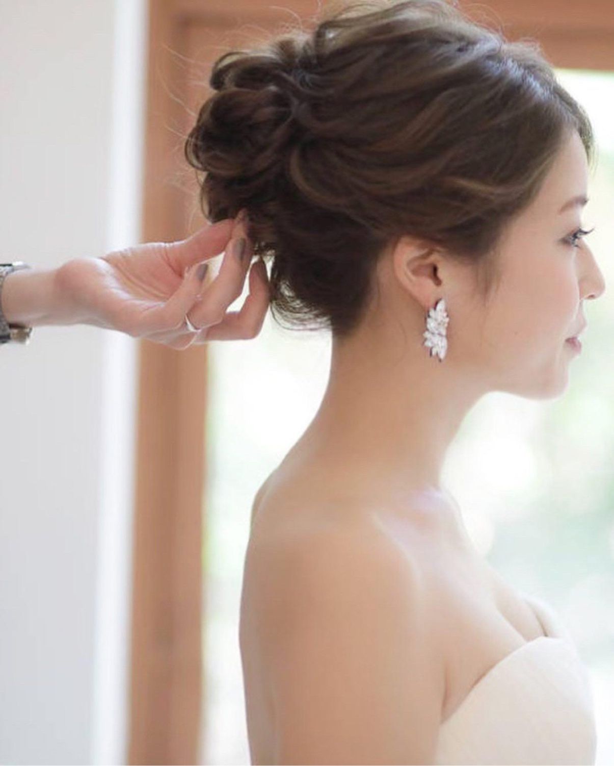 ベールがボリューミーだったのでウェーブが見えるように小さめのワンポイント。