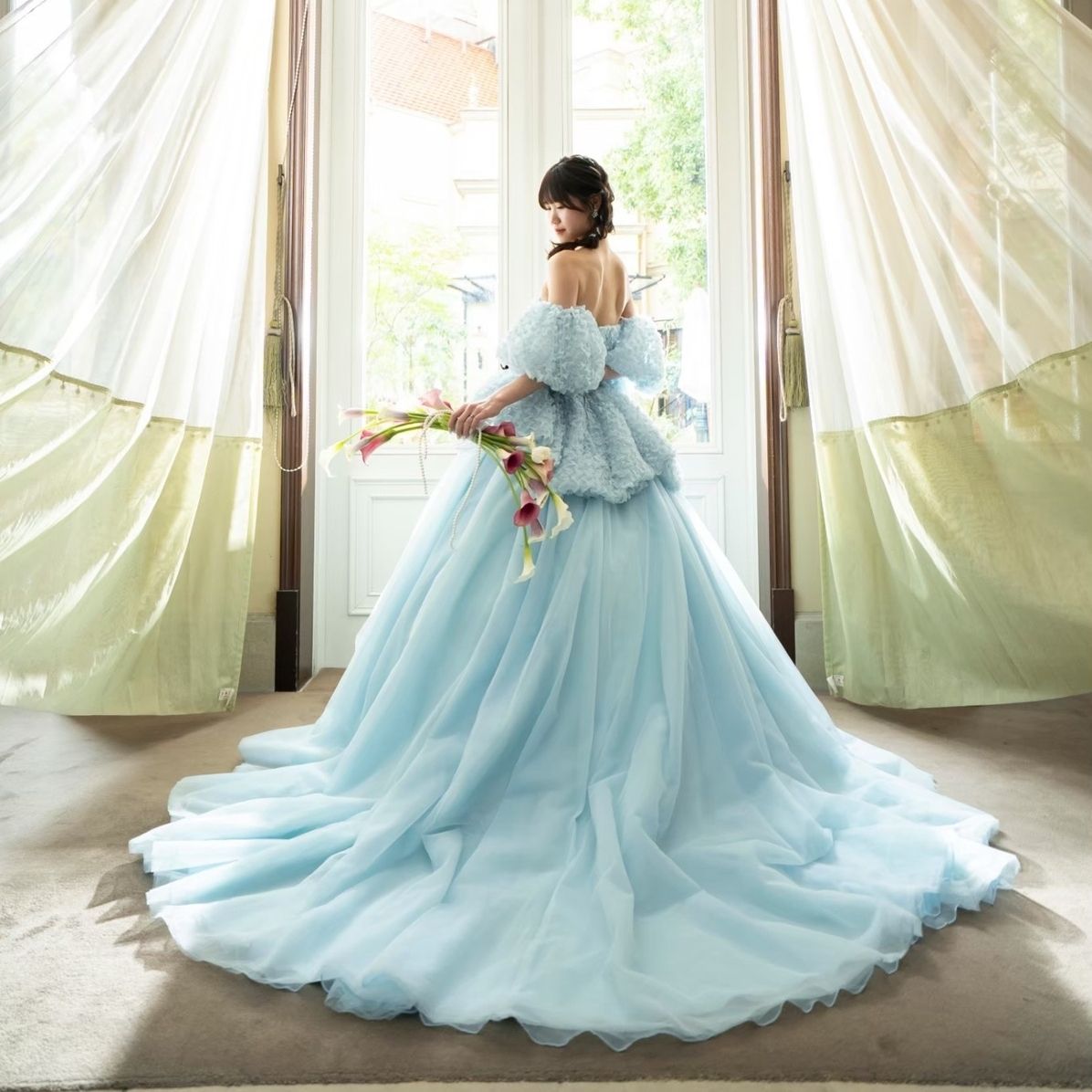 また、お姫様抱っこをした際にドレスがふわっと広がるシルエットが本当に素敵で、まさに一強と思えるほど心を掴まれたドレスです。